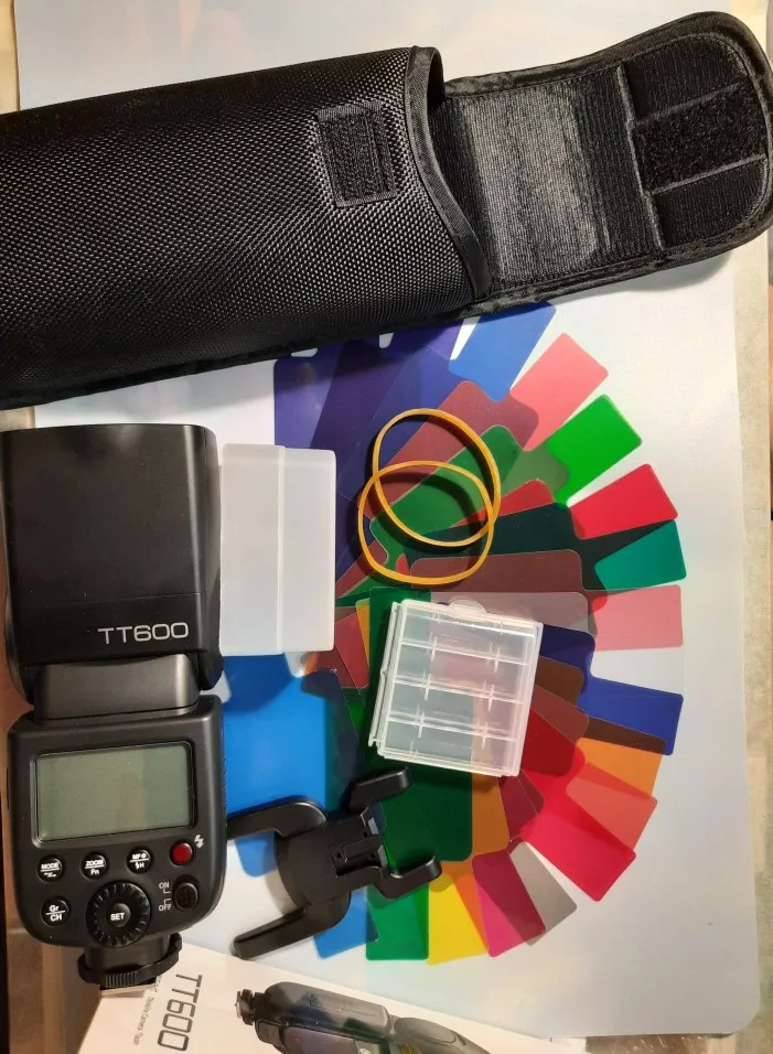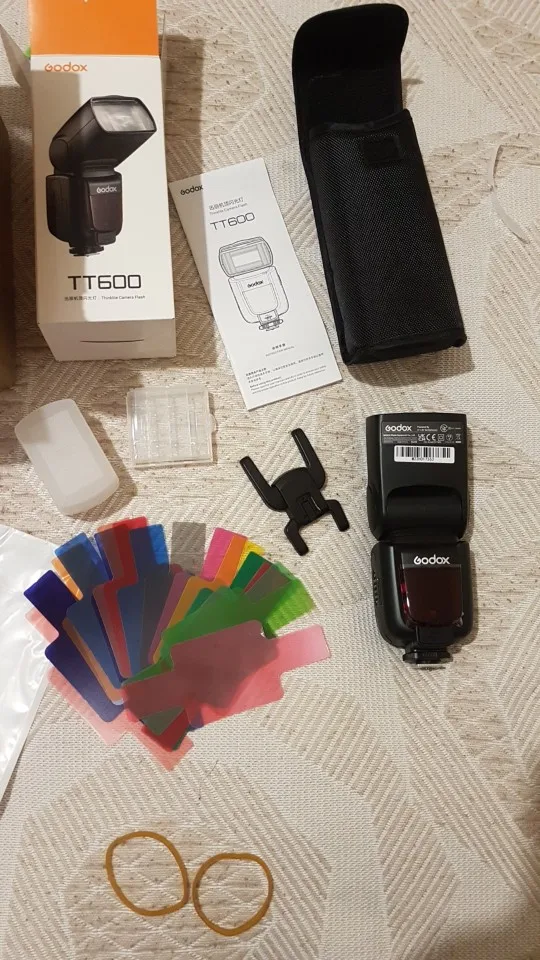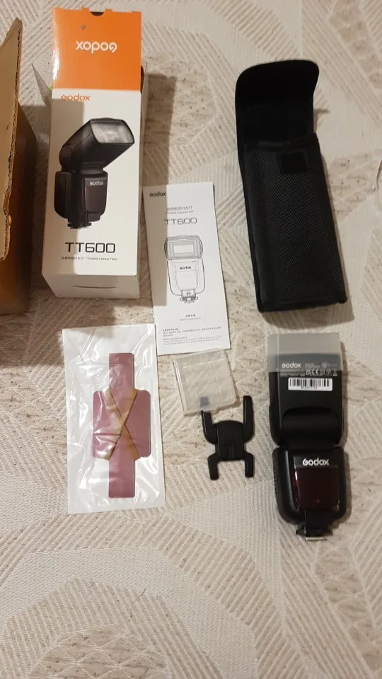 посылка пришла в срок, за неделю. Упаковано хорошо. все в комплекте. вспышка работает хорошо