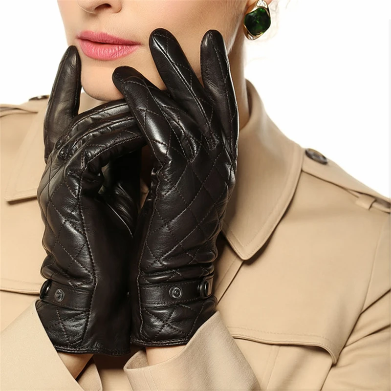 Новинка 2020, женские перчатки из натуральной кожи, женские модные элегантные перчатки из овчины, осенне-зимние теплые перчатки с бархатной подкладкой, L121NC-1