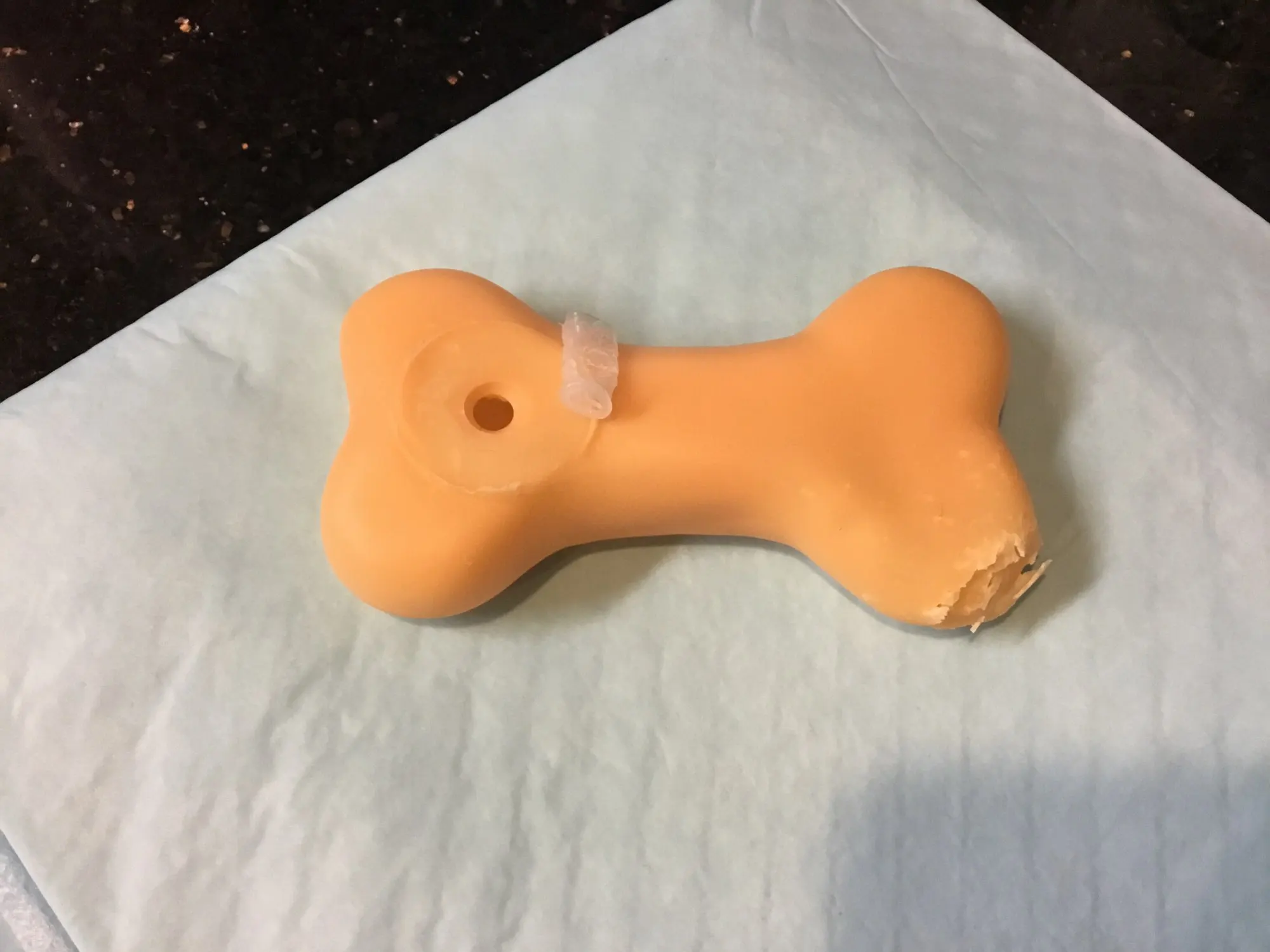 Только что получил эту игрушку для собаки сегодня. Щенок мог жевать его в течение 30 секунд, прежде чем заглушка выключится. Также кусочки костей были выгнуты. Это очень опасный товар, который не должен продаваться!