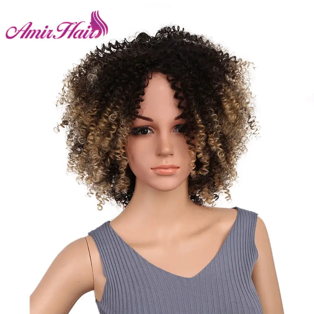 Amir синтетические волосы короткие афро кудрявые парик с Омбре черный и коричневый микс блонд парики для женщин с бесплатным подарком