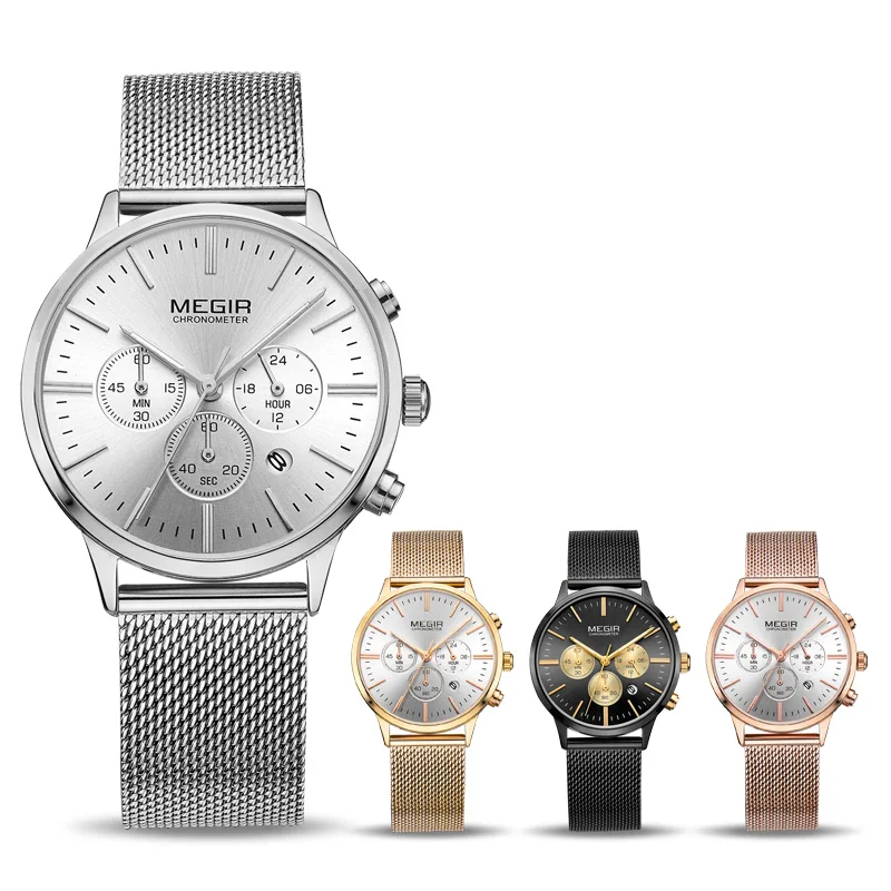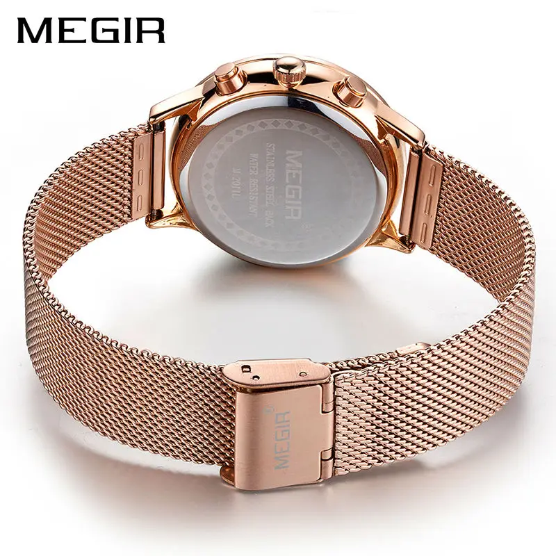 Часы MEGIR женские кварцевые с сетчатым ремешком, модные повседневн...
