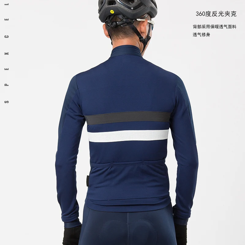 SPEXCEL новейшая Светоотражающая зимняя велосипедная куртка ветрозащитная термальная флисовая мягкая оболочка велосипедная куртка высшего качества темно-синий