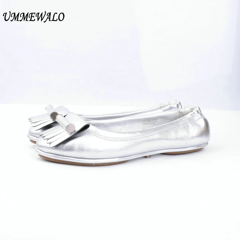 UMMEWALOженские туфли на плоской подошве, мягкие балетки из натуральной кожи, модные высококачественные Балетки с круглым носком, женская повседневная обувь