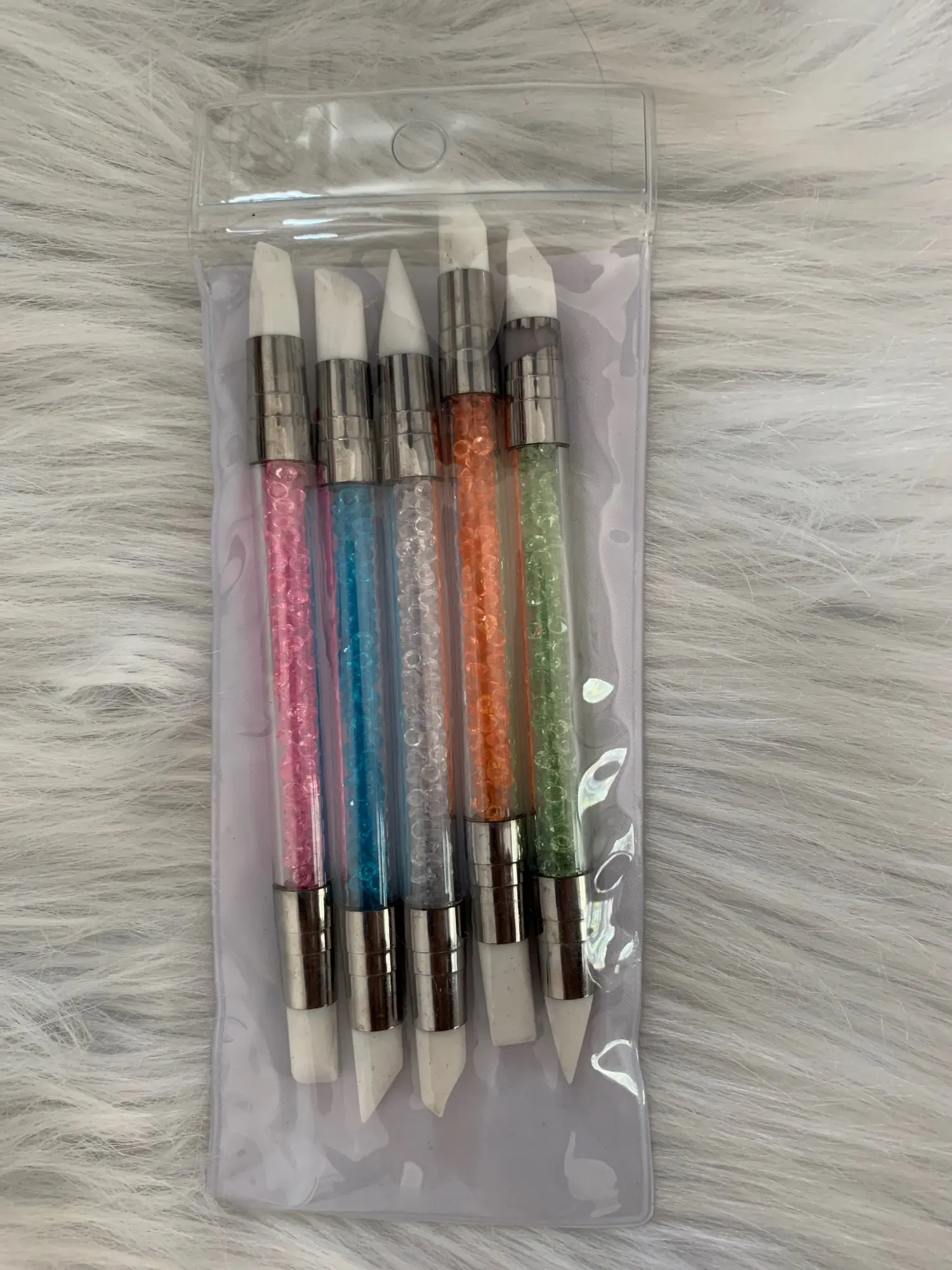 Силиконовая кисть для дизайна ногтей, 5 шт., Ручка для рисования, УФ-гель, сделай сам, лак, двойная головка, зеркальная пудра, скульптурный инструмент для маникюра