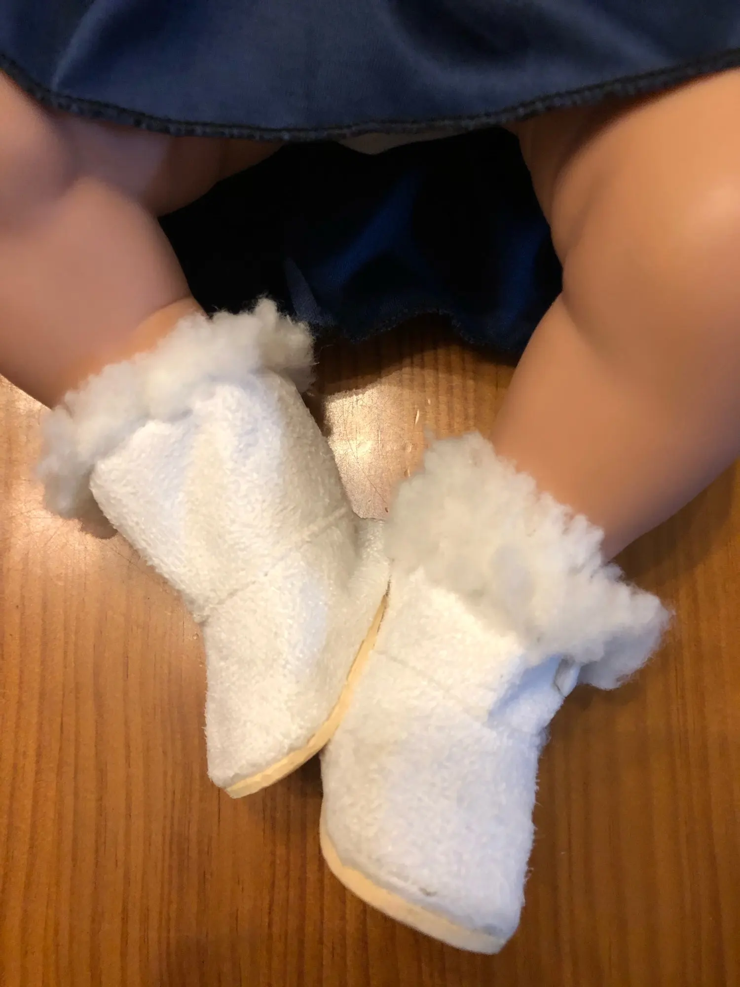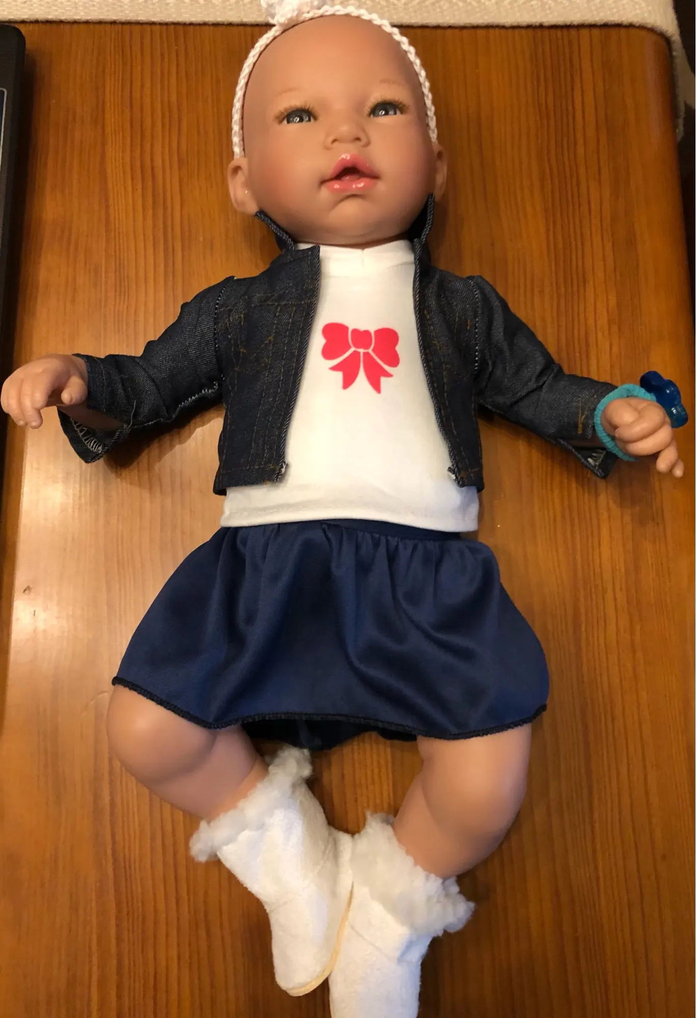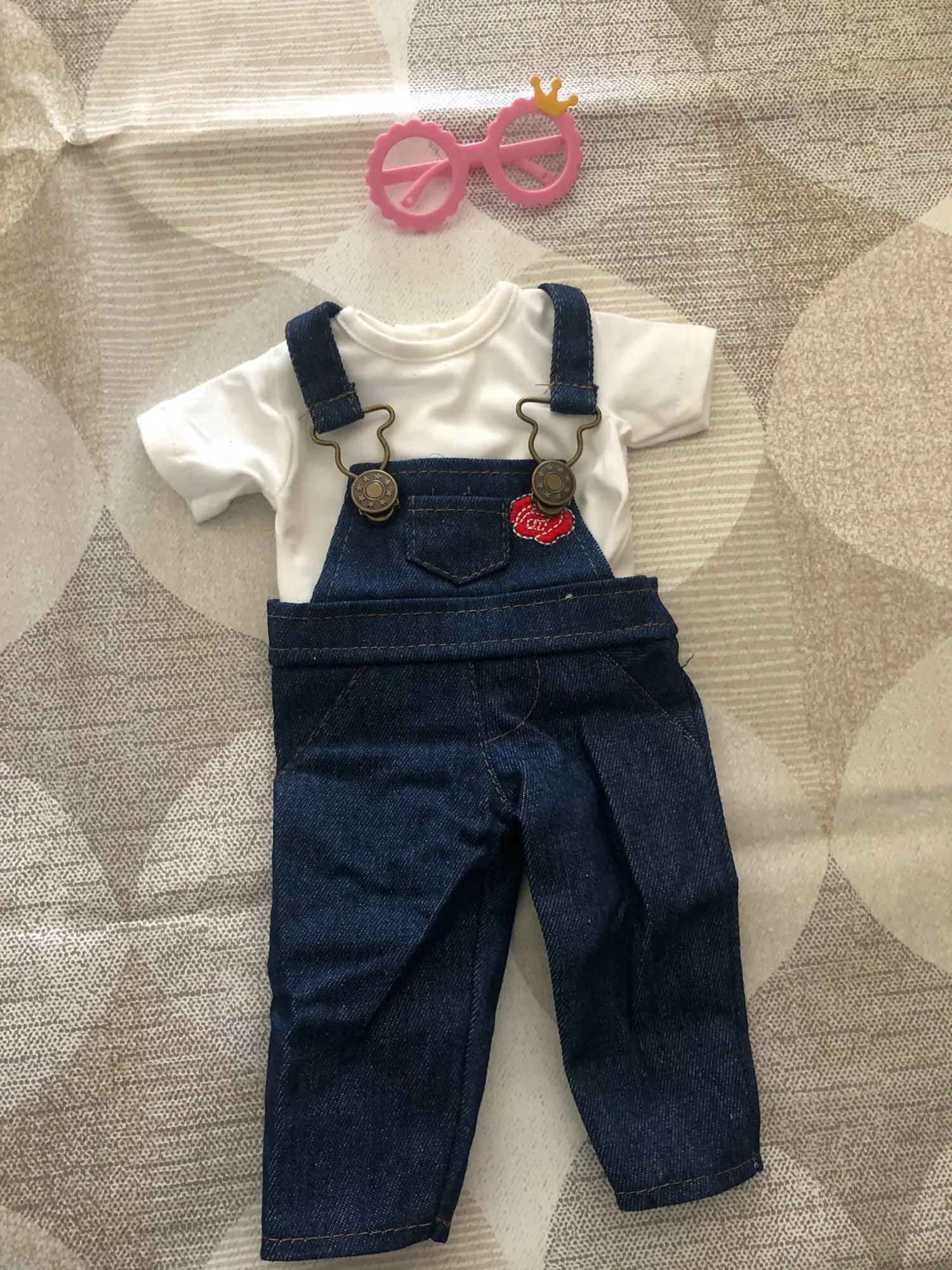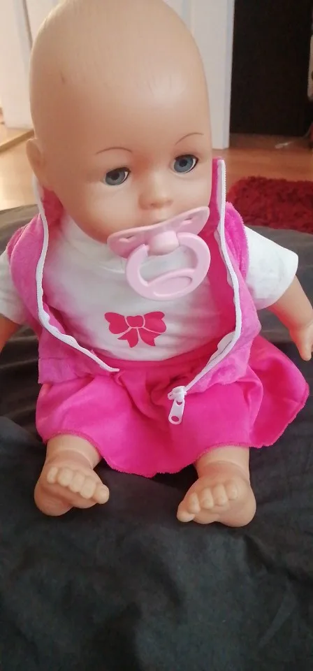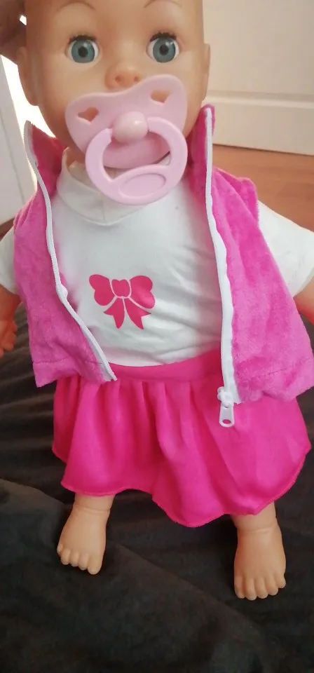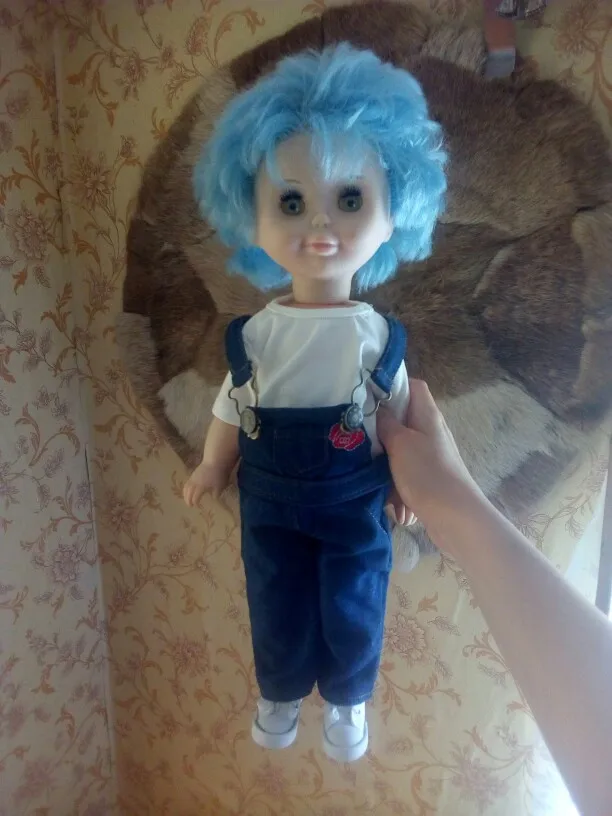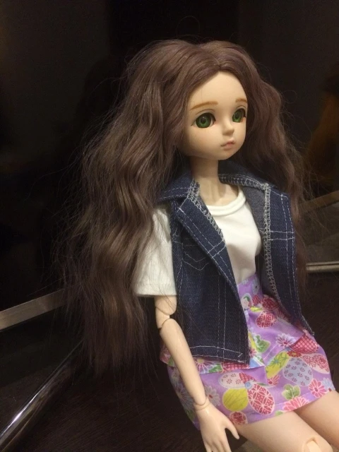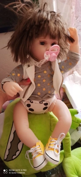Супер милая, подходит для моего детского 16 "фарфоровой куклы, я хотел модернизировать для моей дочери. Прибыл в течение нескольких недель. Отличная конструкция. Джинсы тянут более фиолетового цвета, но это нормально