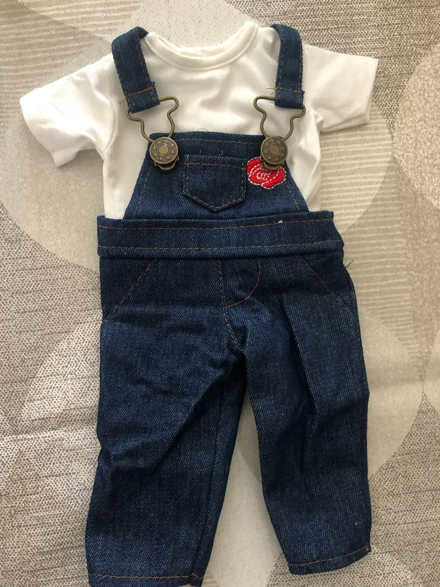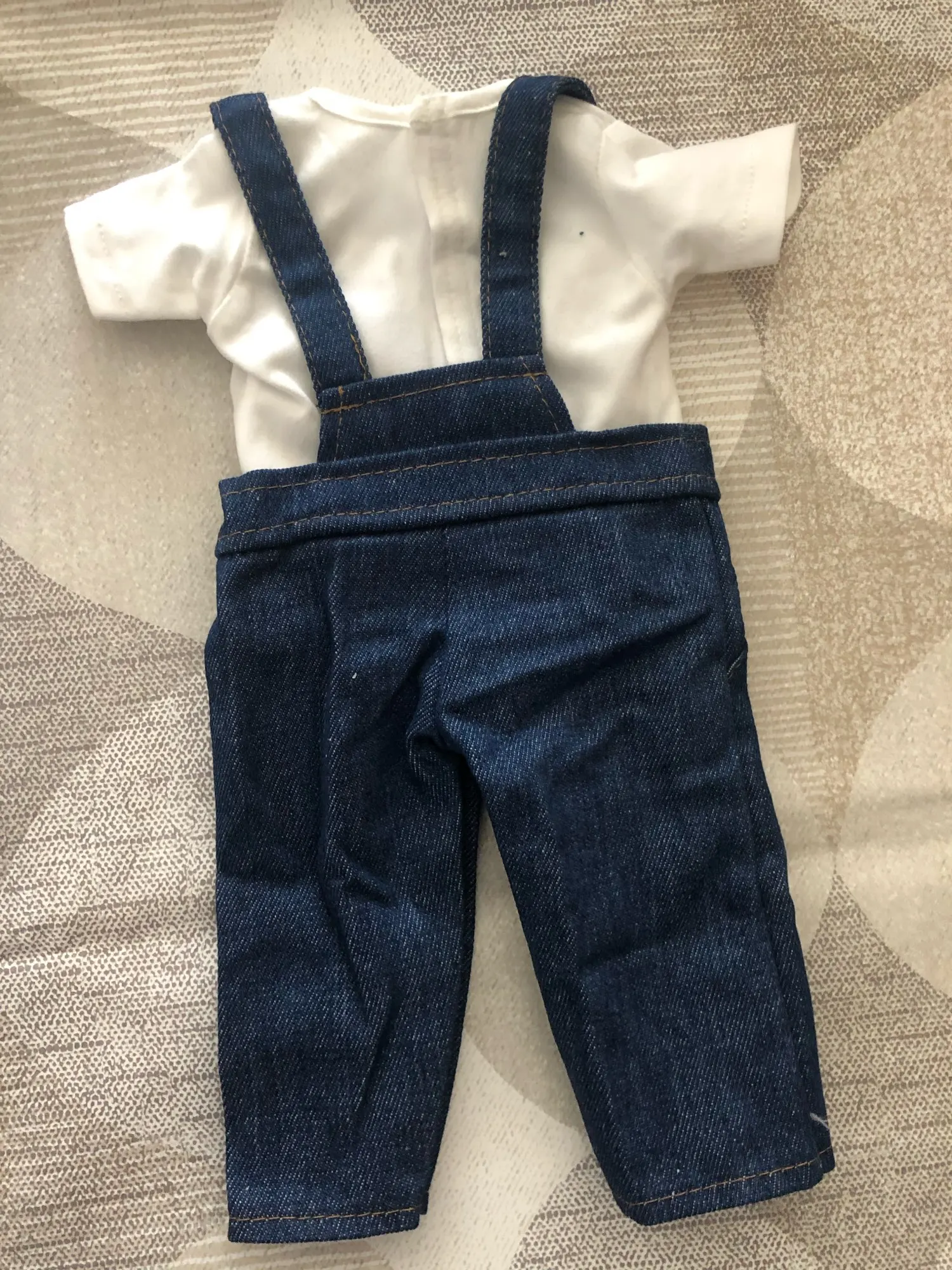 Очень хорошо обработанная кукольная одежда. Жилет и толстовка идеально сидят. Штаны для наших 37 см большая кукла слишком плотная и слишком длинная.