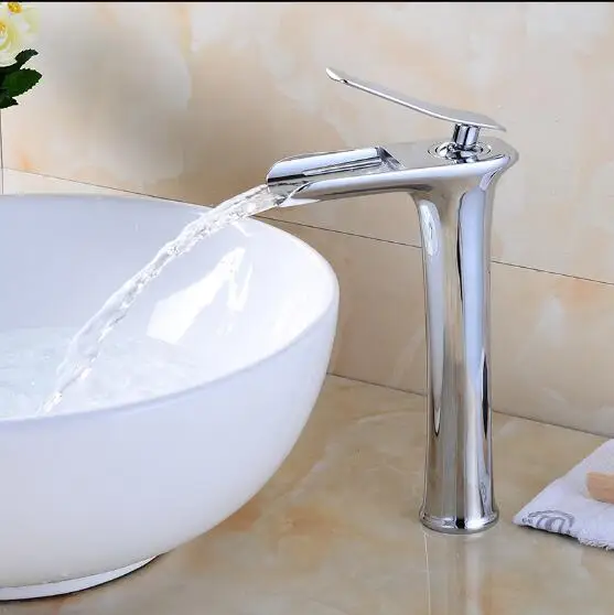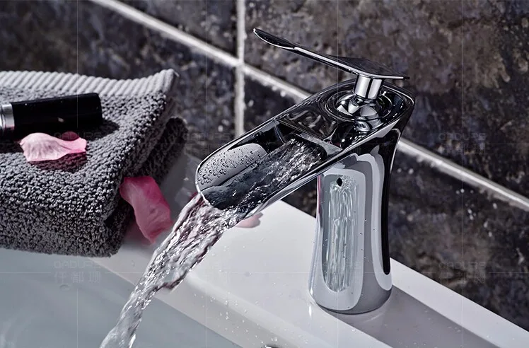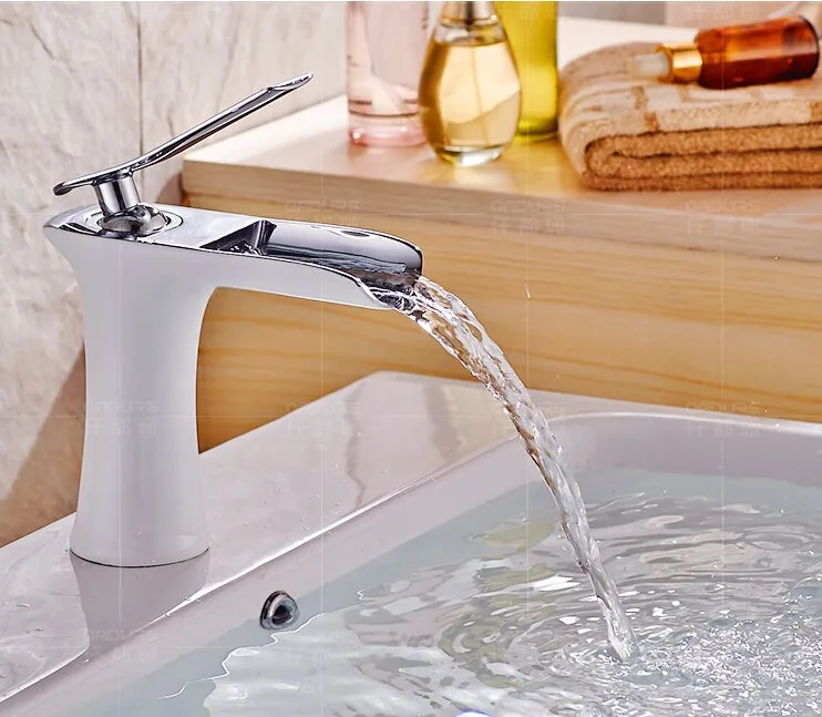 Бесплатная доставка, хромированный и белый кран с водопадом, кран для ванной комнаты, смеситель для ванной комнаты, кран с горячей и холодной раковиной