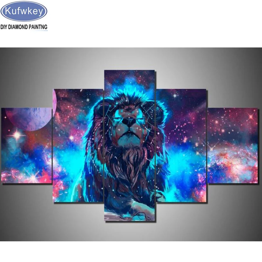 5 шт., алмазная вышивка Лев, животные, 5d алмазная живопись, полноформатная мозаика, картина стразы, вышивка крестиком на Рождество, подарки