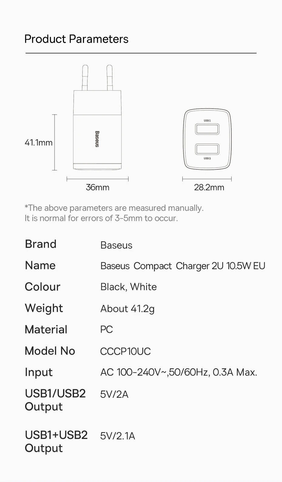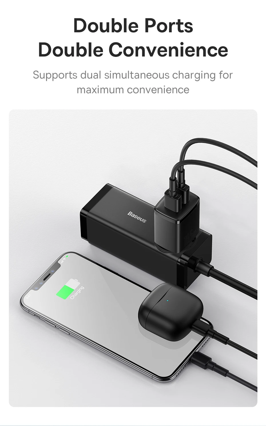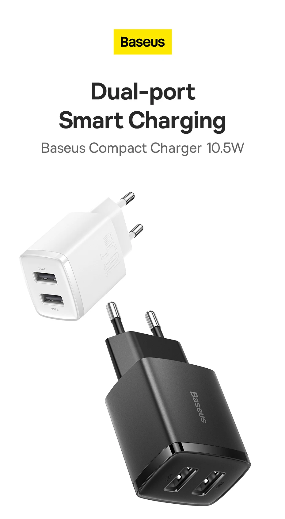 Адаптер питания Baseus с двумя USB-портами для телефона