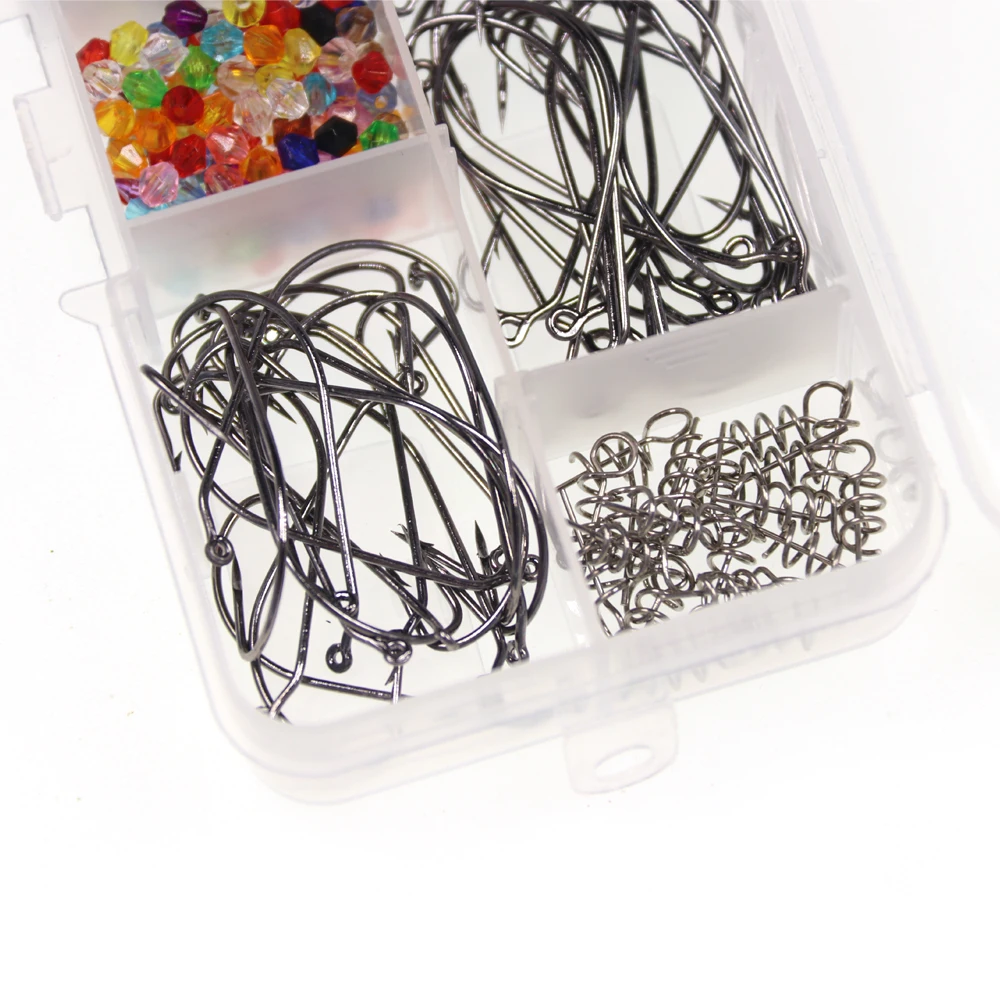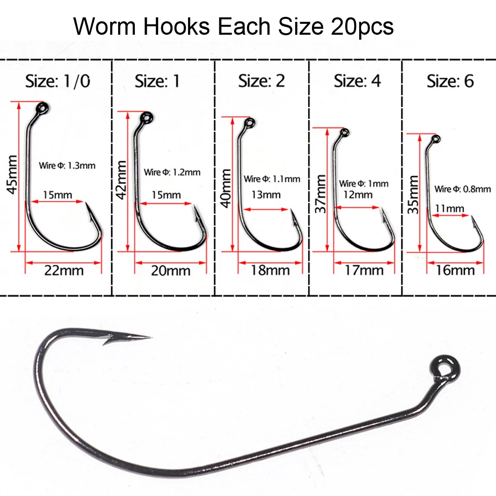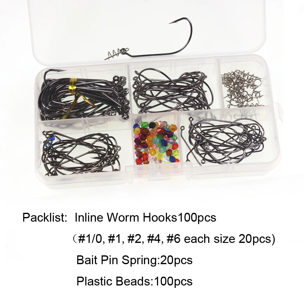 1 коробка 100 крючок под червя + 20 шт. пружина для приманки + 100 бусин Червячные крючки с встроенным кольцом для крючкаПроушиной