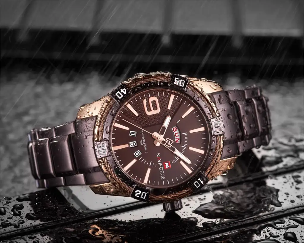 NAVIFORCE Роскошные Брендовые мужские спортивные часы золотые полностью Стальные кварцевые часы мужские Дата водонепроницаемые военные часы мужские relogio masculino