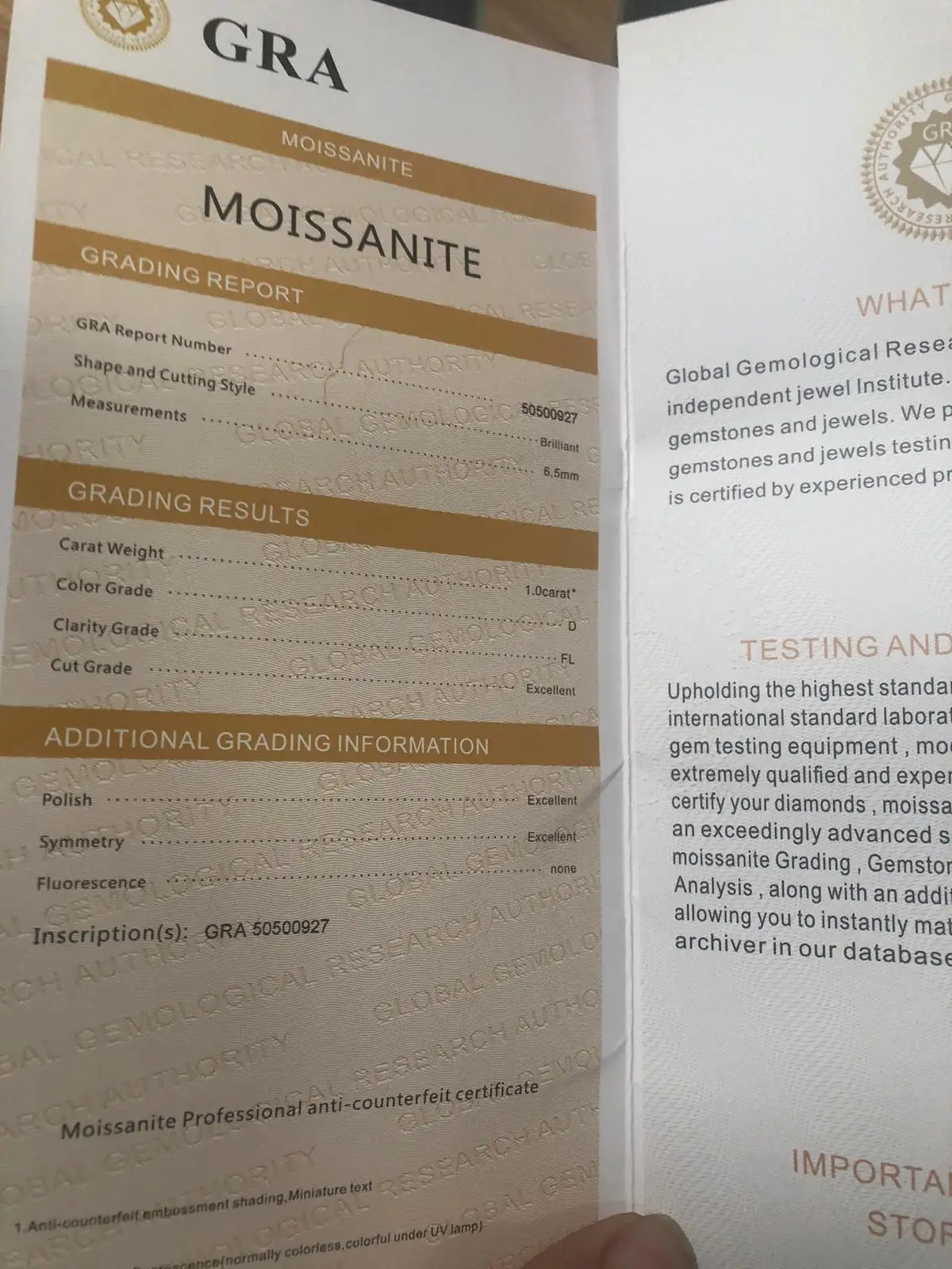 Received my order today and I am very happy about it. Exactly as described. The seller is very nice and the store is awsome. Communicated humbly in the mean time. Item can be seen in pictures. Although pictures can't show items real worth. Sparcles insanely and brilliantly. It was my first experience with Ali express and this store. I highly recommend this seller for anyone looking for moissanite jewelry and rings. Love from Pakistan.