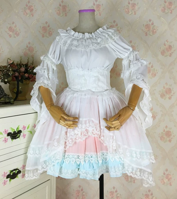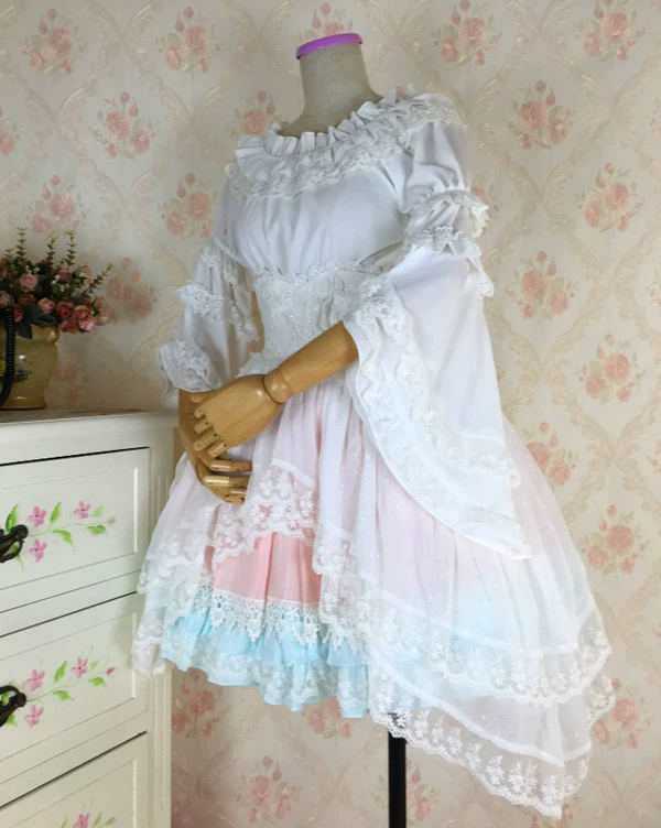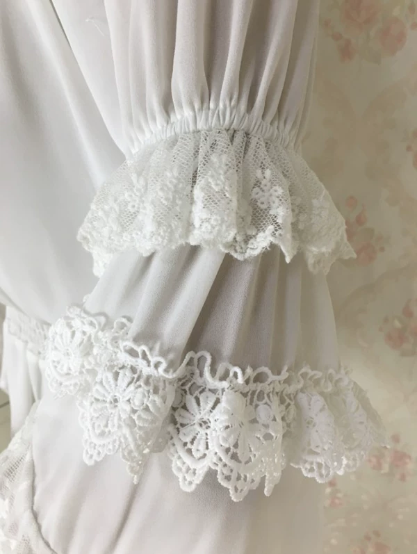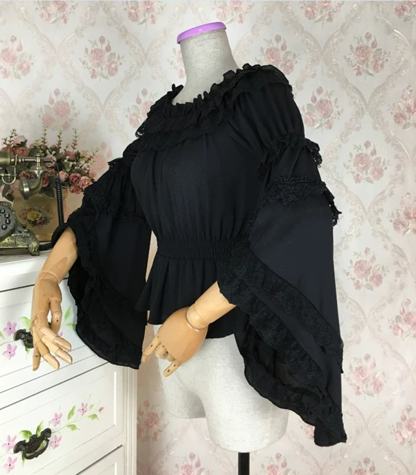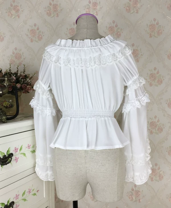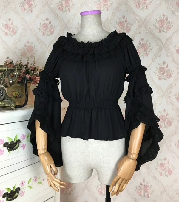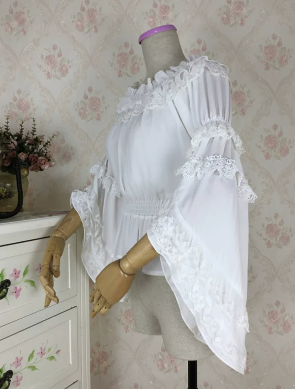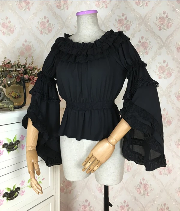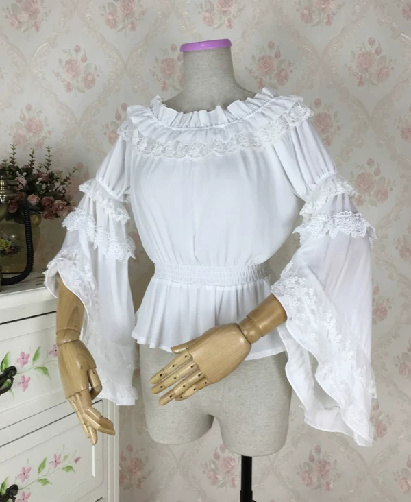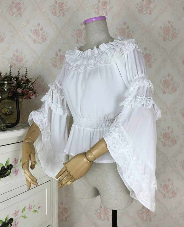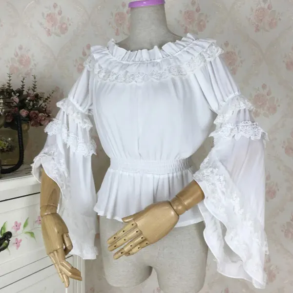 Милая женская шифоновая блузка с длинным Расклешенным рукавом, винтажный топ с открытыми плечами