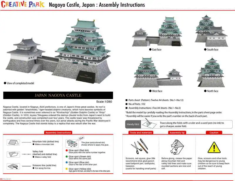 Замок Nagoya, японская крафт-бумага, модель, архитектура, 3D сделай сам, развивающие игрушки ручной работы, игра-головоломка для взрослых