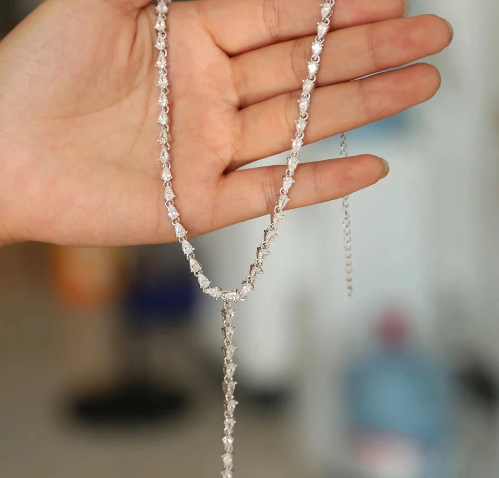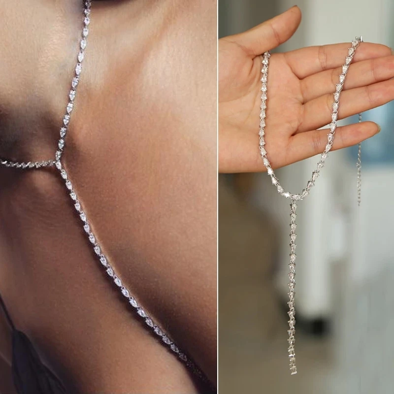 Новое поступление 2023, уникальная Соблазнительная цепь для тенниса, свадебные ювелирные изделия для помолвки, колье-чокер с фианитами класса ААА, длинное блестящее роскошное ожерелье