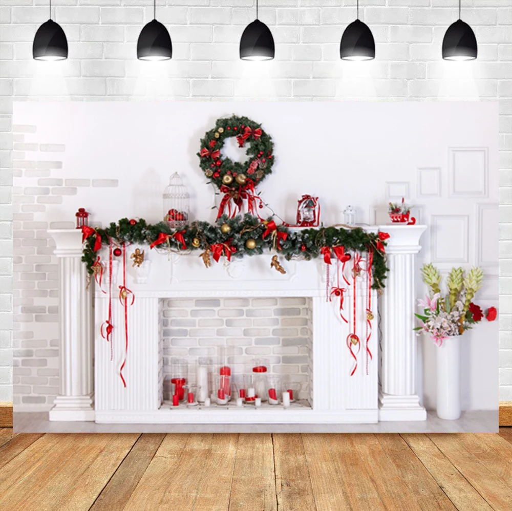 Рождественская фотозона часы гирлянда камин интерьер фотография Фон новый год дом декоративный фон фотосессия Фотостудия