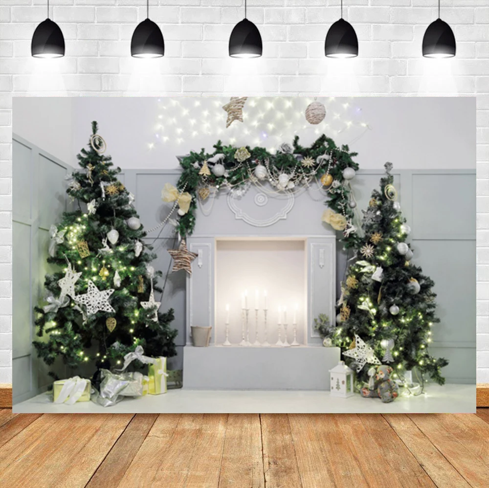 Laeacco Рождественские фоны для фотосъемки дерево подарок гирлянда ...