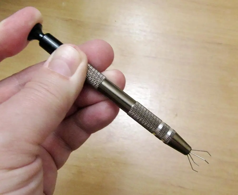 Посылка пришла достаточно быстро, несмотря на предновогоднее время. Сама штука очень удобная, когда нужно возиться с мелкими деталями. Захватывает их хорошо.