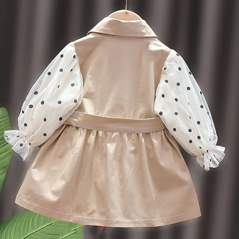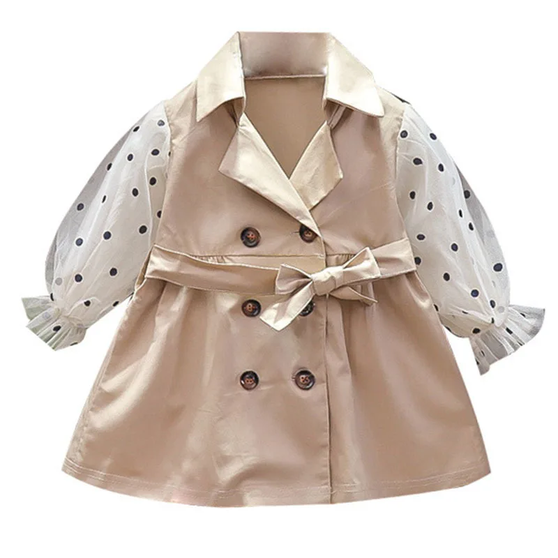 Новинка, Осенний плащ для девочек 2021 г., детская куртка в горошек с длинными рукавами кардиган, детская одежда для маленьких девочек