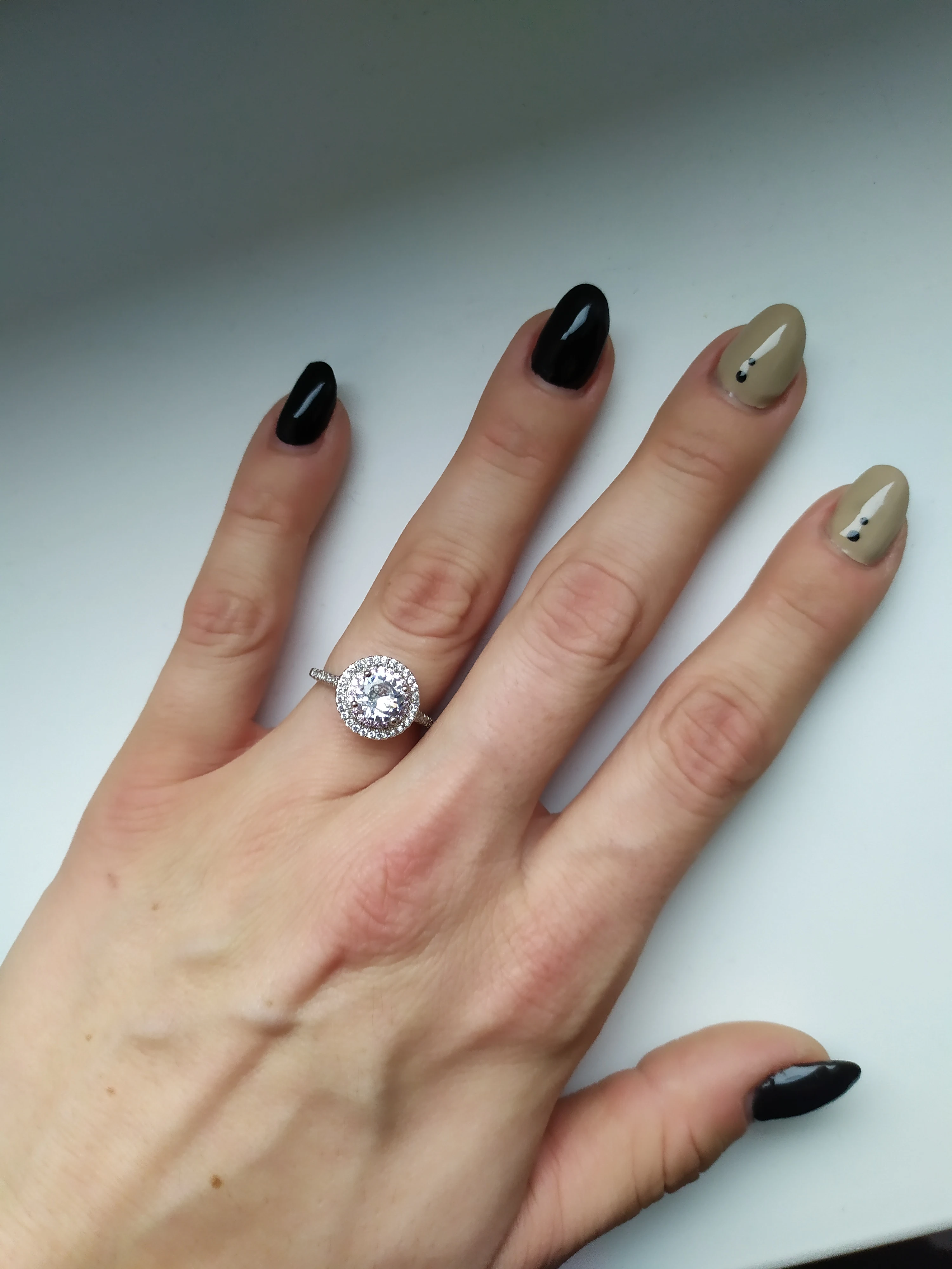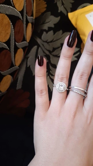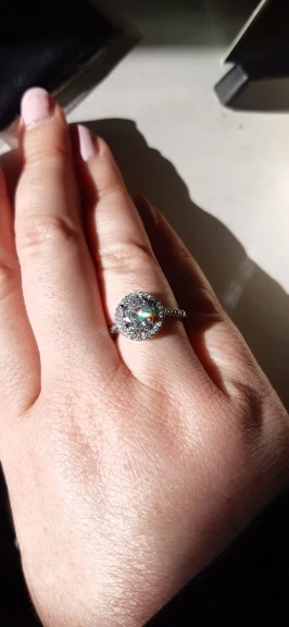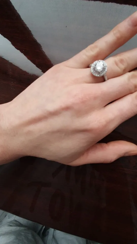 Красивое кольцо. Как на фото. Выглядит дорого! Эта установка камней идеальна. Недостатков нет. Я носил его около недели. Я снимаю его, когда мою руки. До сих пор нет поворота или потускнения. Очень сверкающий! Продукт высочайшего качества, который я когда-либо получил за цену. Спасибо.