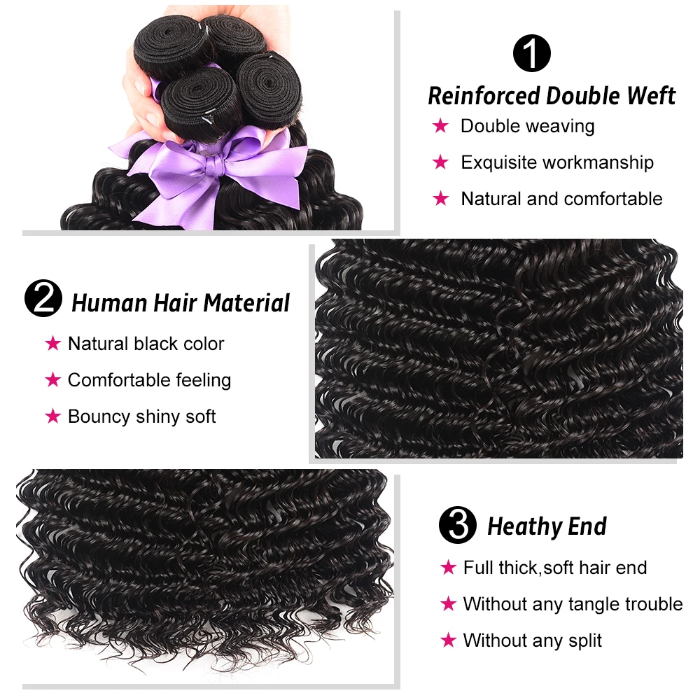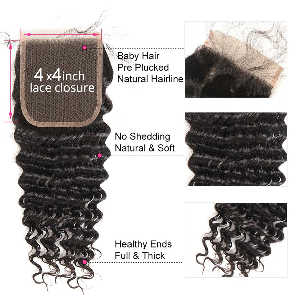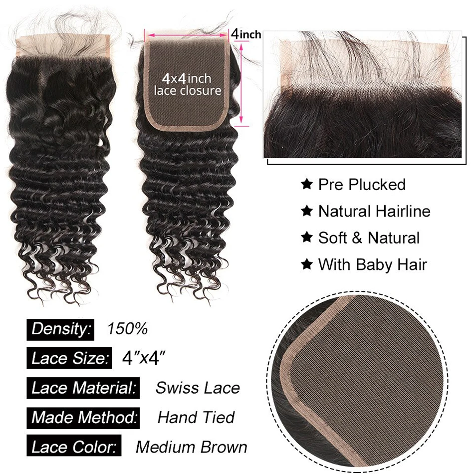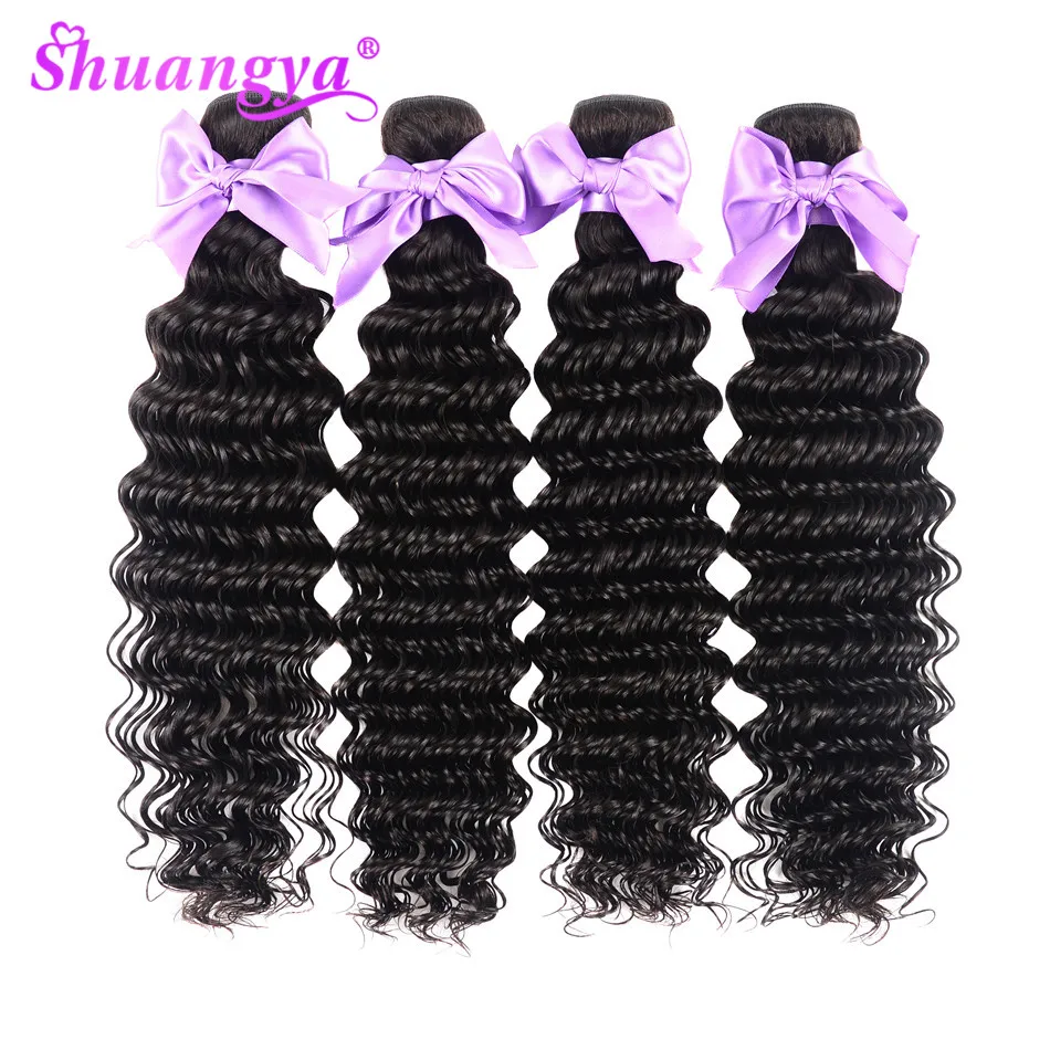 Волосы Shuangya Бразильские глубокие волнистые пучки с застежкой 4x4 пряди с пряди Реми 100% человеческие волосы 34 пучки с застежкой