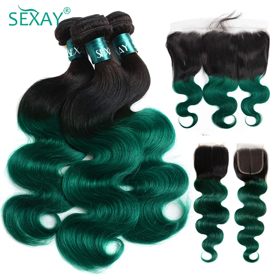 Пупряди SEXAY Ombre с застежкой 1Bзеленые двухцветные человеческие волосы Омбре 3 пряди с застежкой тканевые волосы с застежкой Реми