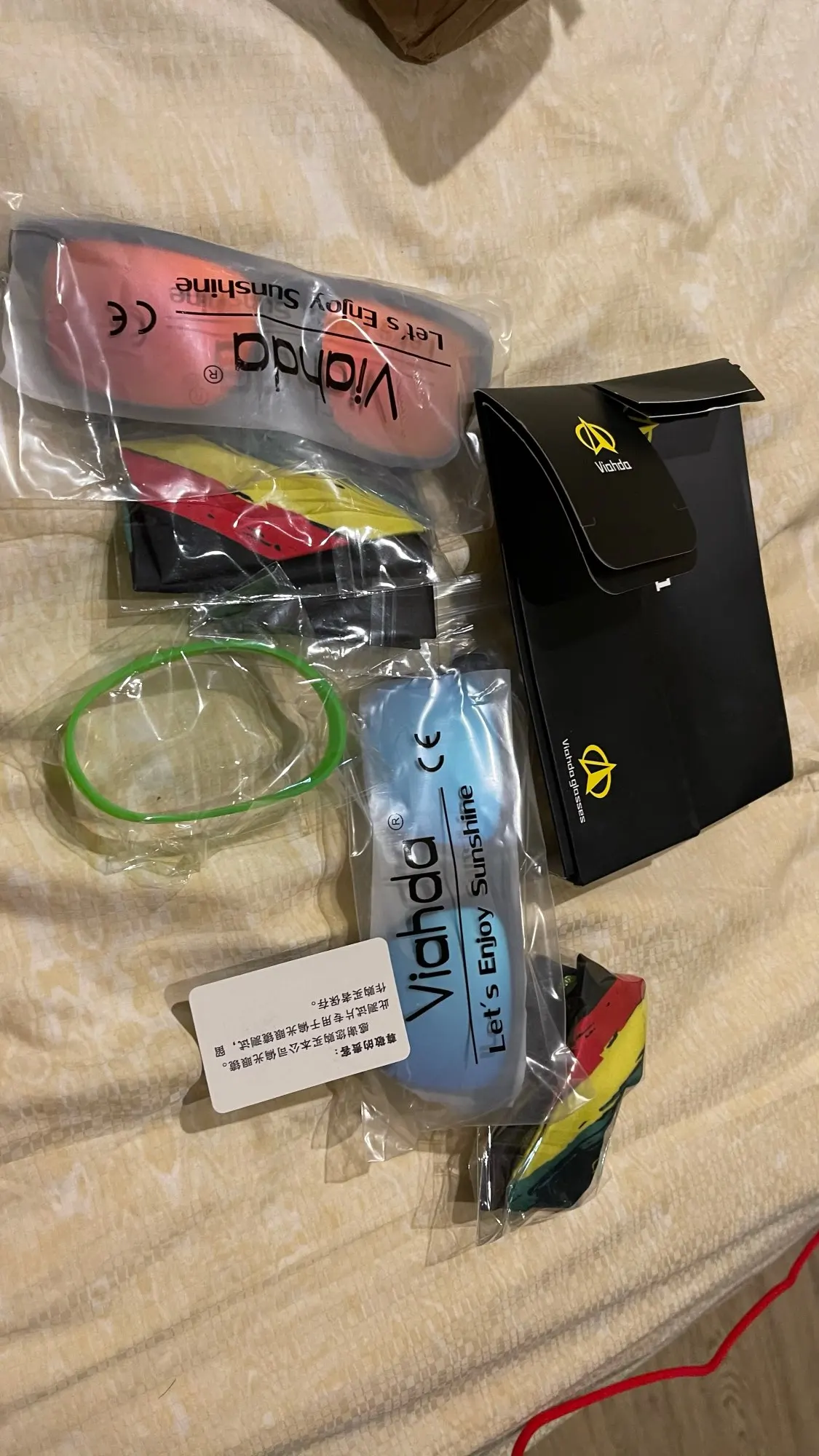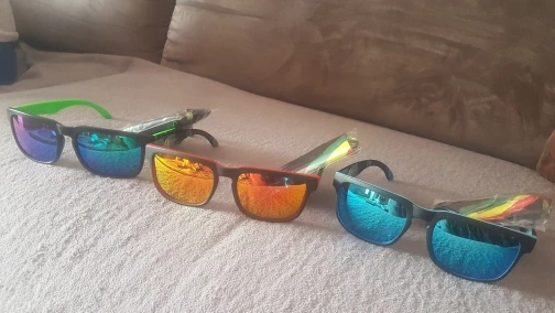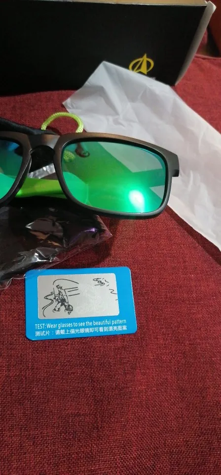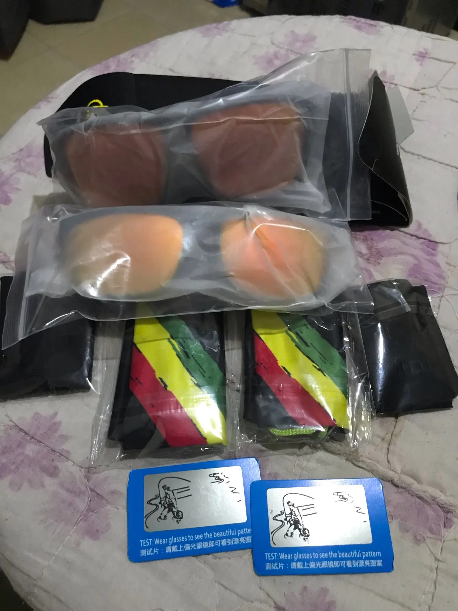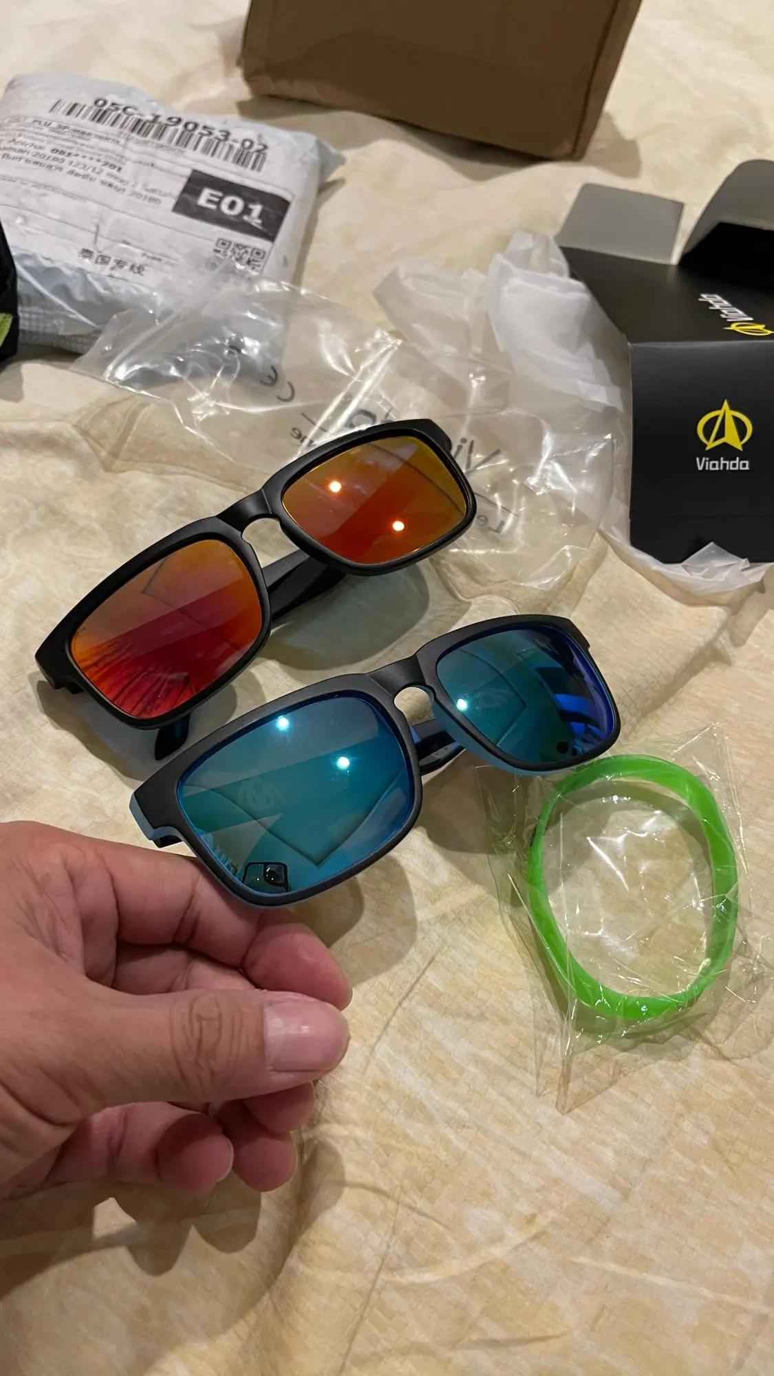 Отличные очки, быстро пришли, в плотной картонной коробке, в комплекте чехол, пряпочка, силиконовая хрень на руку и картонка с рисунком для теста поляризации - работают.