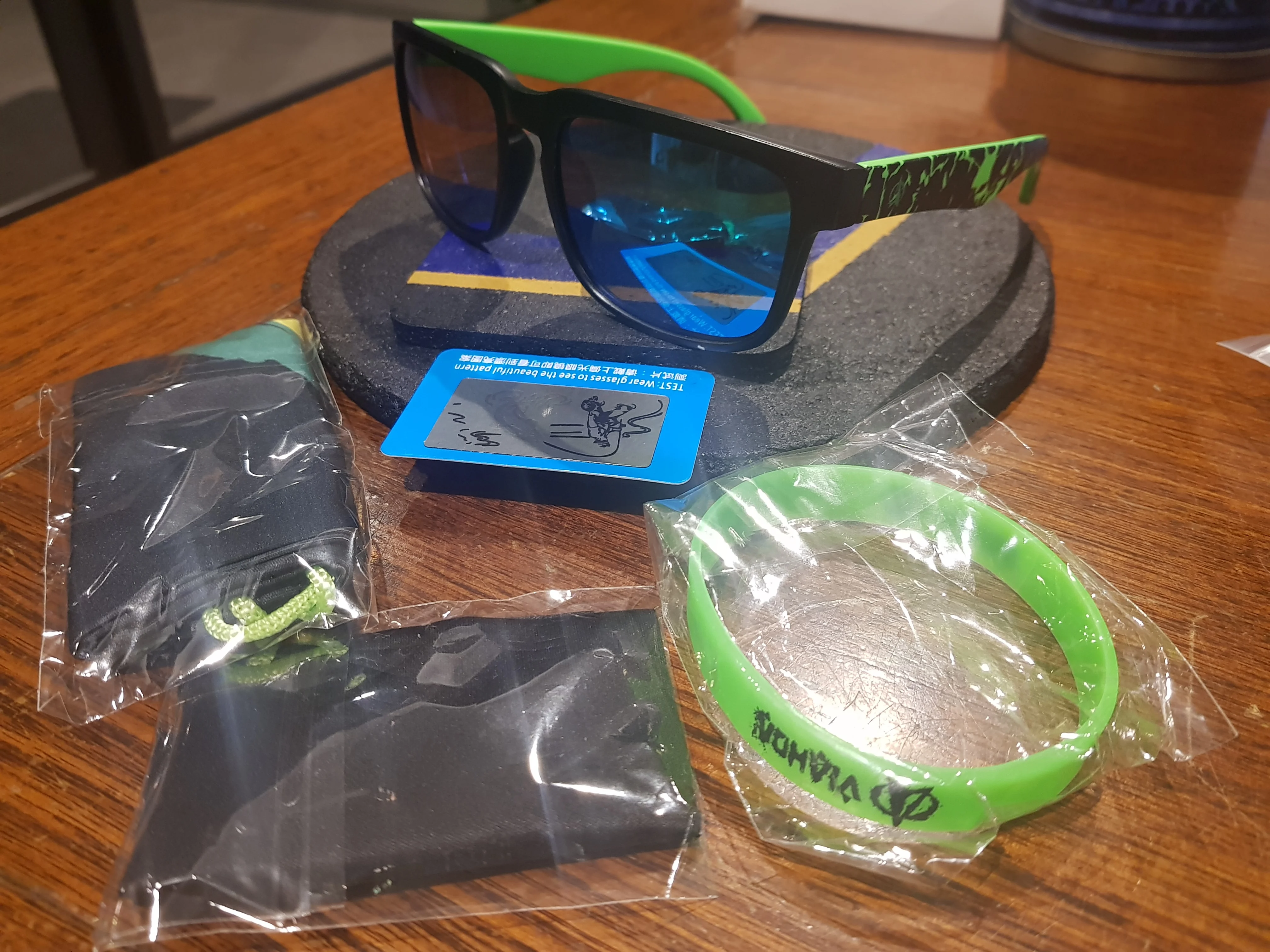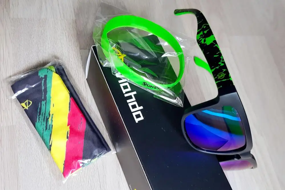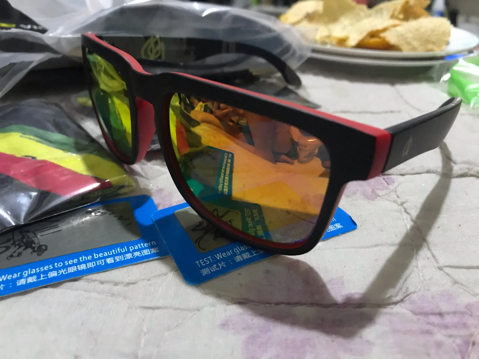 Отличные очки, быстро пришли, в плотной картонной коробке, в комплекте чехол, пряпочка, силиконовая хрень на руку и картонка с рисунком для теста поляризации - работают.