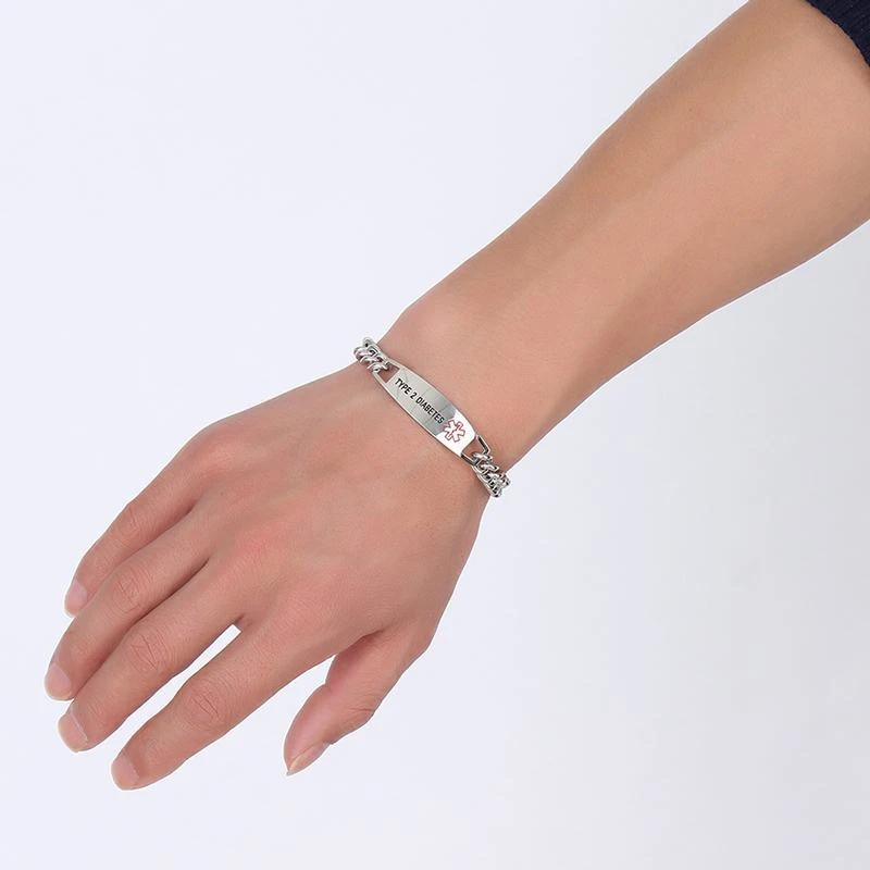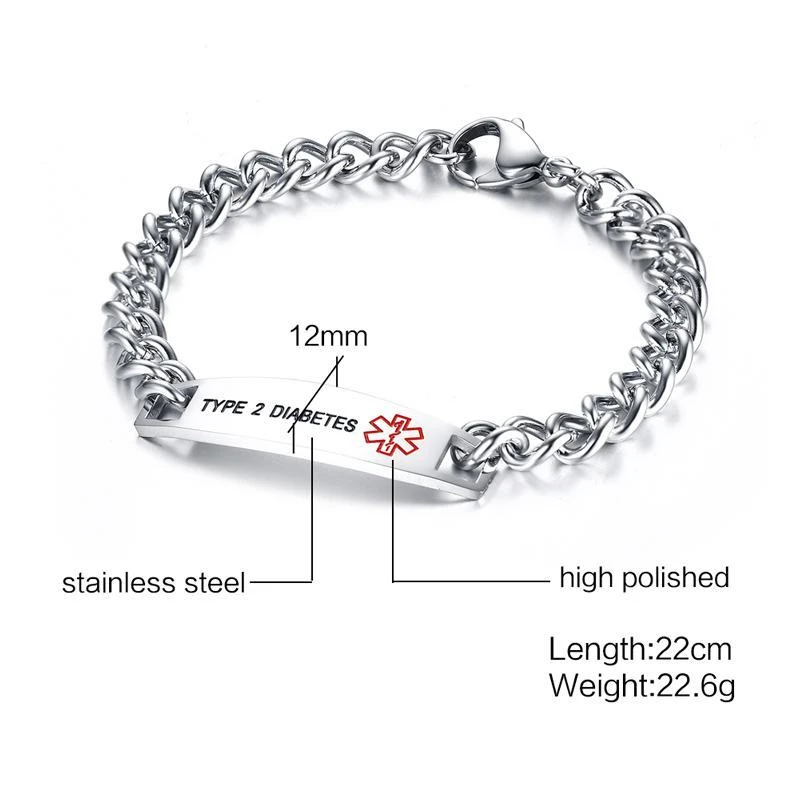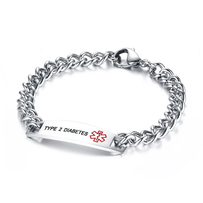 Браслет с идентификацией для мужчин и женщин, ювелирное изделие из нержавеющей стали с медицинской биркой с предупреждением о диабете, тип 2