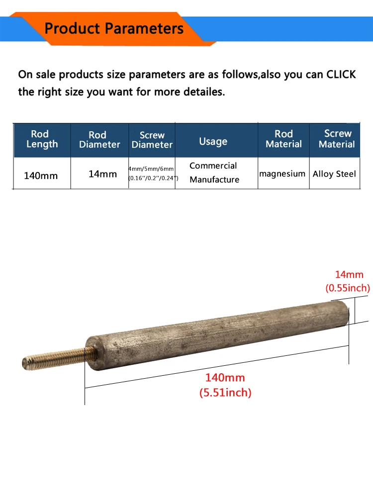 M4/M5/M6 электрический водонагреватель магния бар 14X140 мм небольшой Магний анод стержень