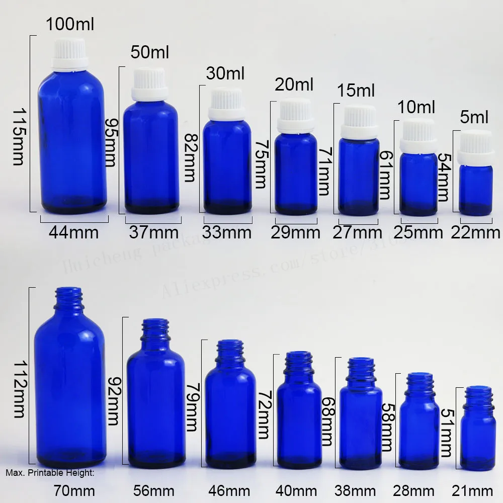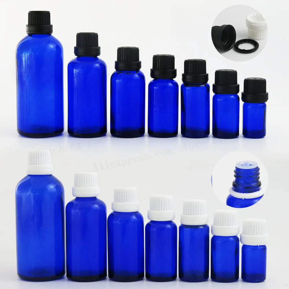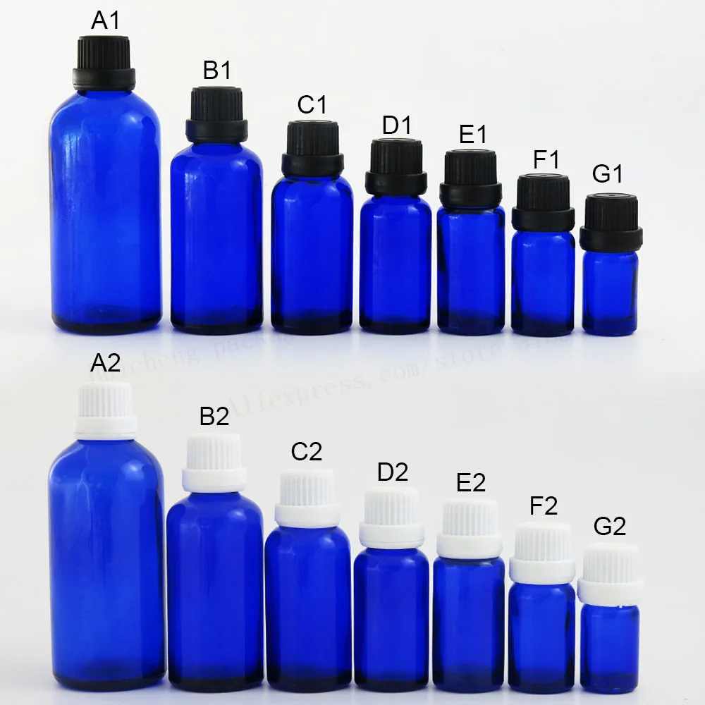 12x5 мл 10 мл 15 мл 20 мл 30 мл 50 мл 100 мл Cobalt Blue маленькая стеклянная бутылка для эфирного масла с белой черной проблесковой крышкой редуктор