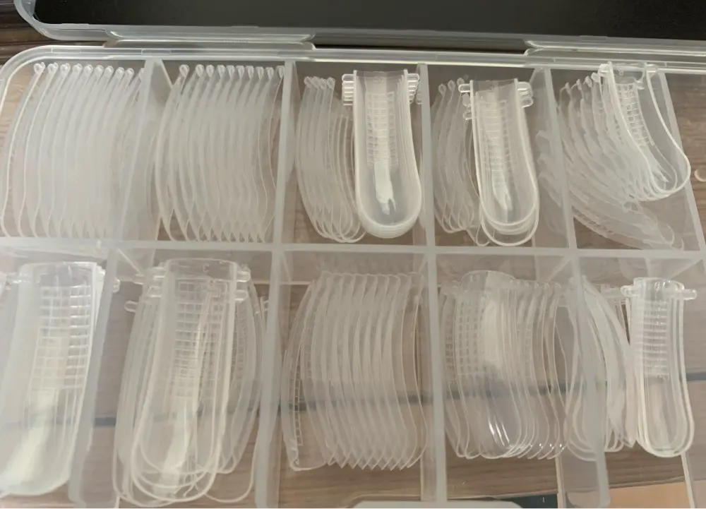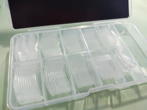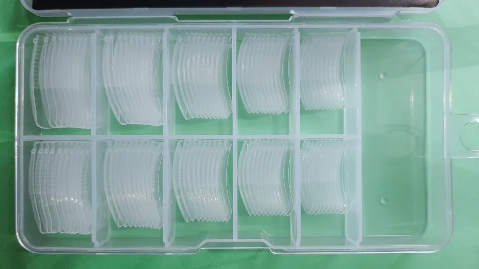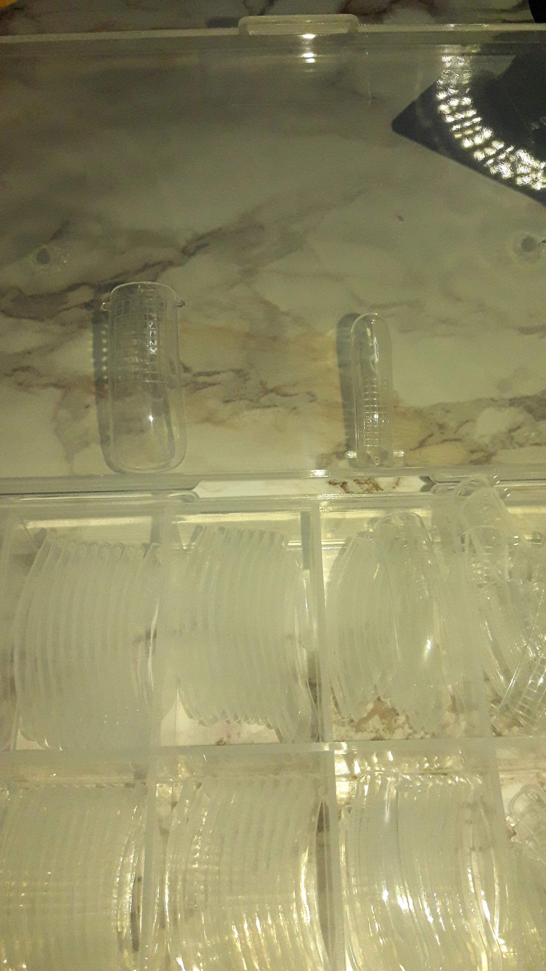Понравились верхние формы, дают нужный апекс, имеются деления, что удобно. Размер найдётся под любой ноготок. И кстати, коробочка смотрится весьма солидно, из плотного пластика, не стыдно такую перед клиентом доставать.