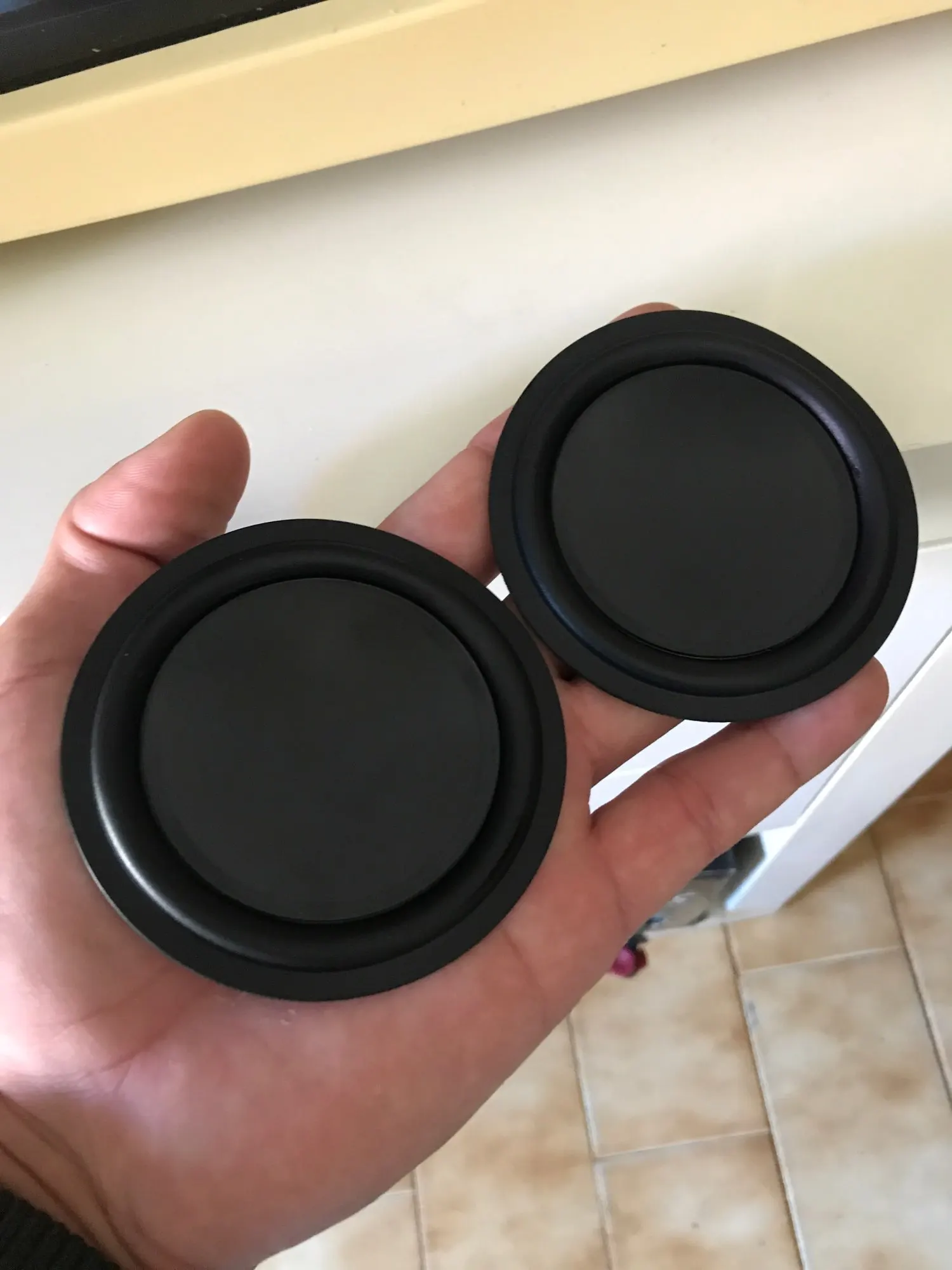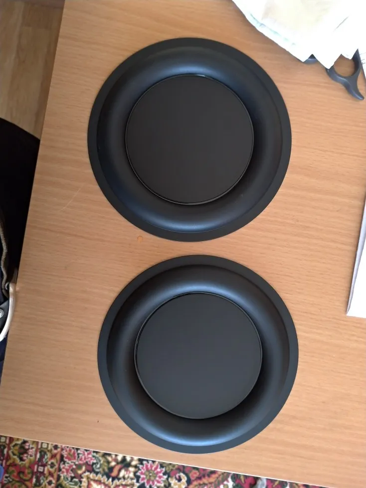 Доставили быстро. Излучатели очень хорошо сделаны и даже не изляпаные. Резина очень хорошая и железная пластина тяжелая , так что басить будет нормально !