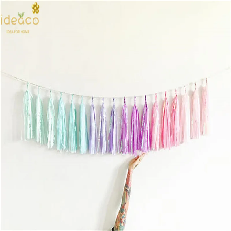 Гирлянда с радужными блестками и единорогом, 18 шт. кисточек (54 листа), переливающийся пастельный баннер на стул, украшения для 1-го дня рождения, 1103
