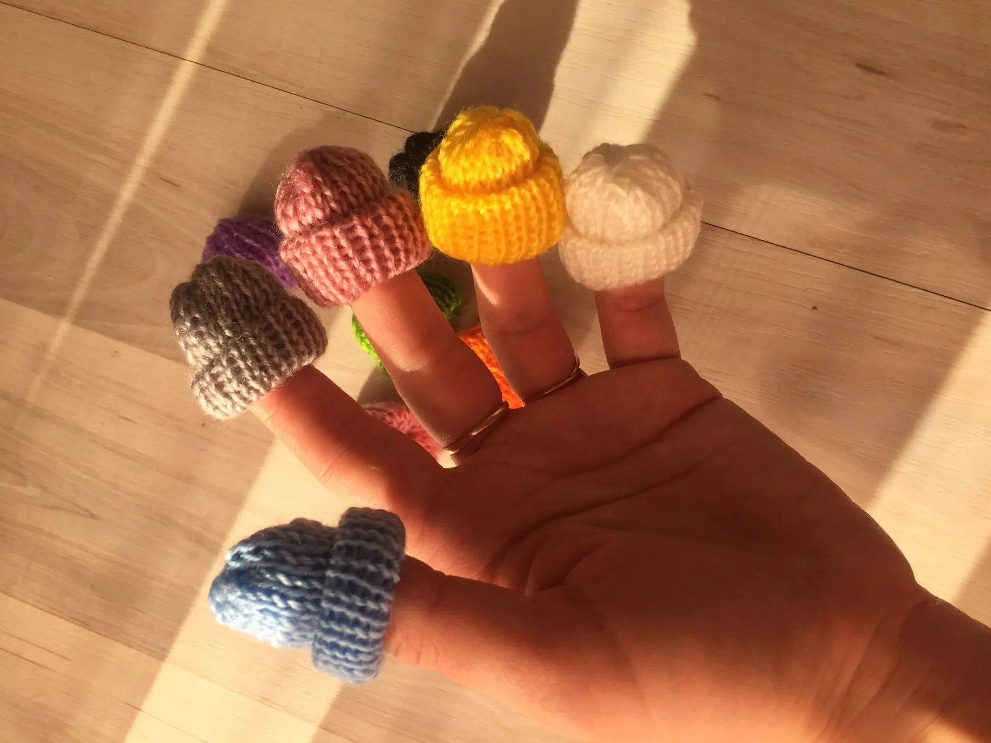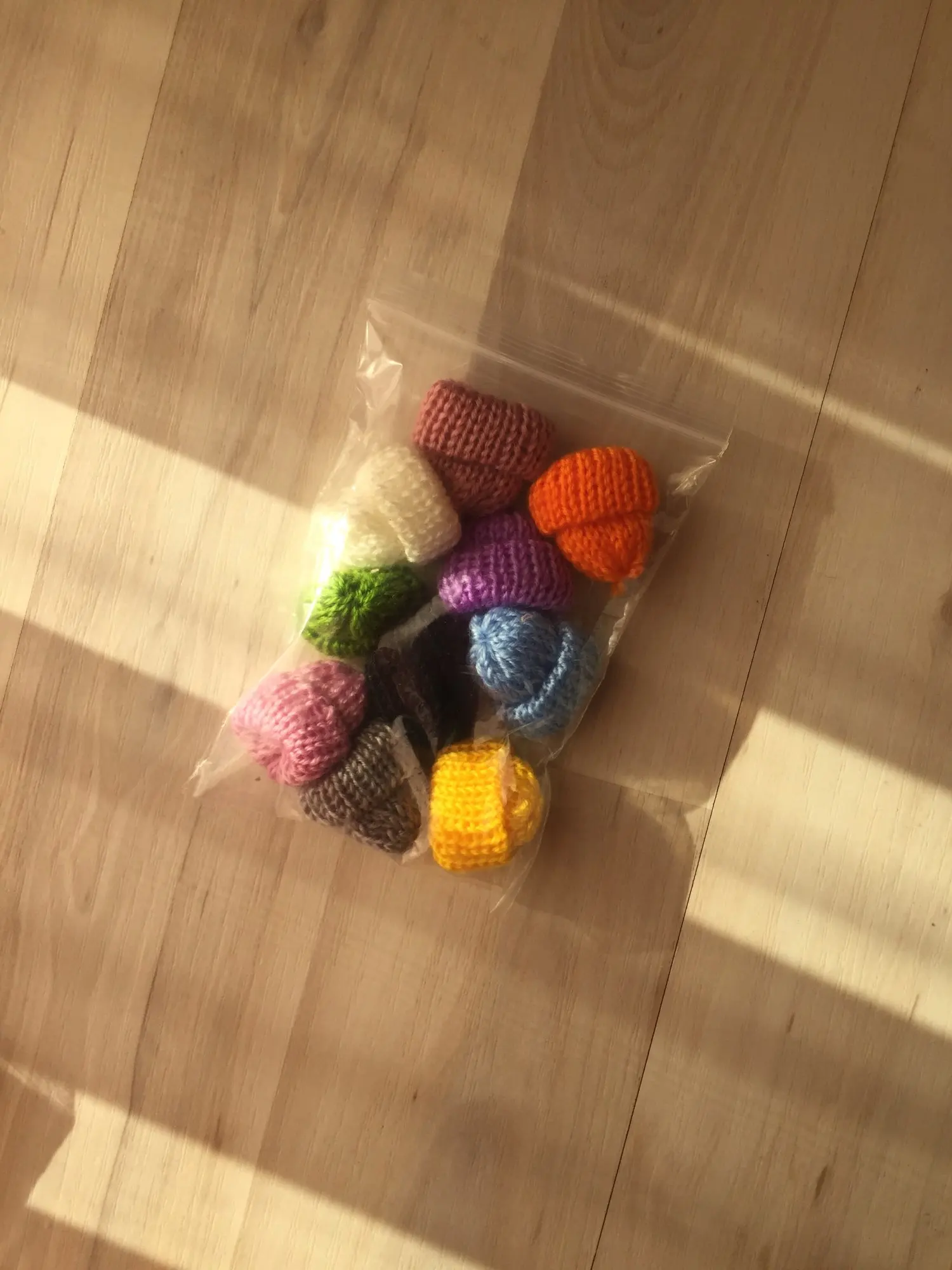 Шапочки очень классные, дочка забрала их играть, надела маленьким куколкам на головы) Продавец положил в подарок милый розовый бисер. Спасибо!)