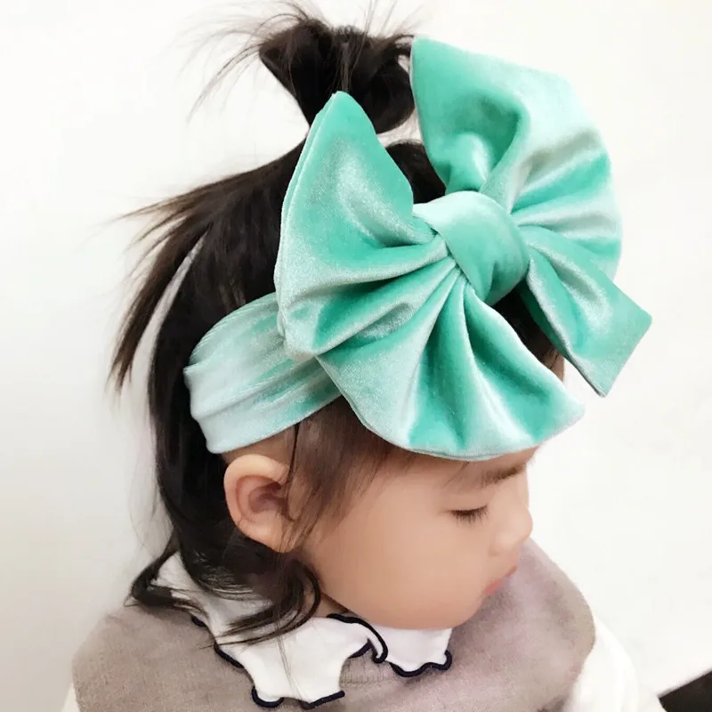 Популярная бархатная Детская повязка на голову, тюрбан с большим ба...