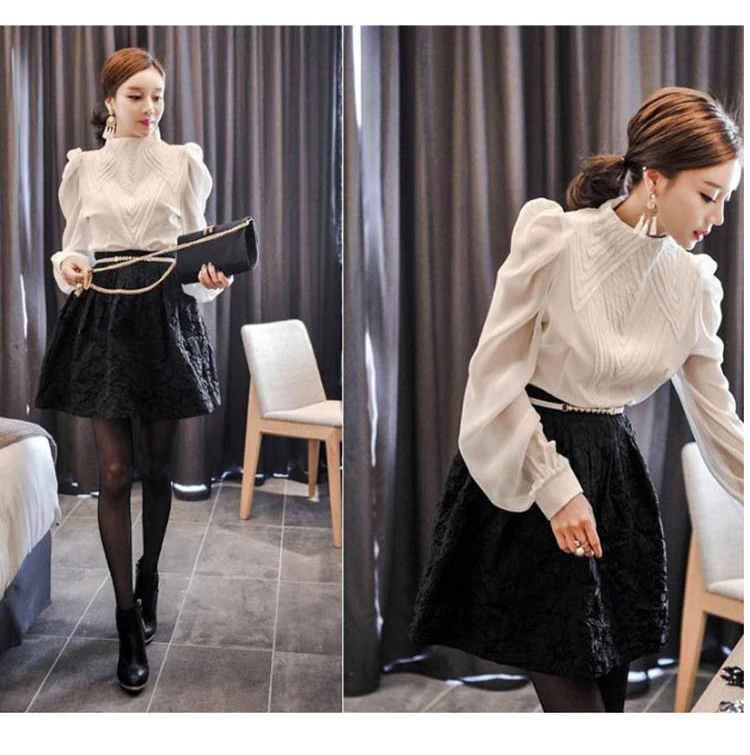 ZAWFL Ретро плиссированная свободная длинная белая блузка с воротником-стойкой 2021 винтажные хлопковые топы модная женская рубашка с рукавами-фонариками