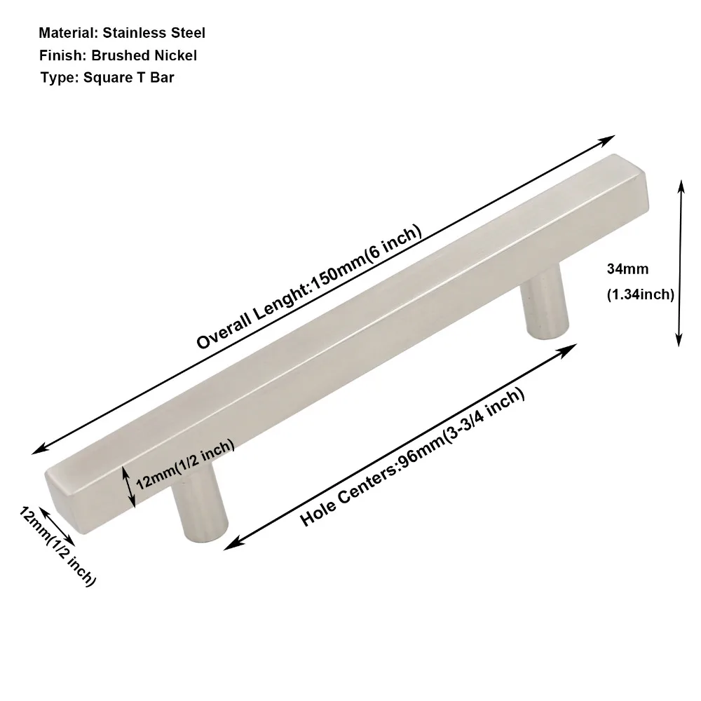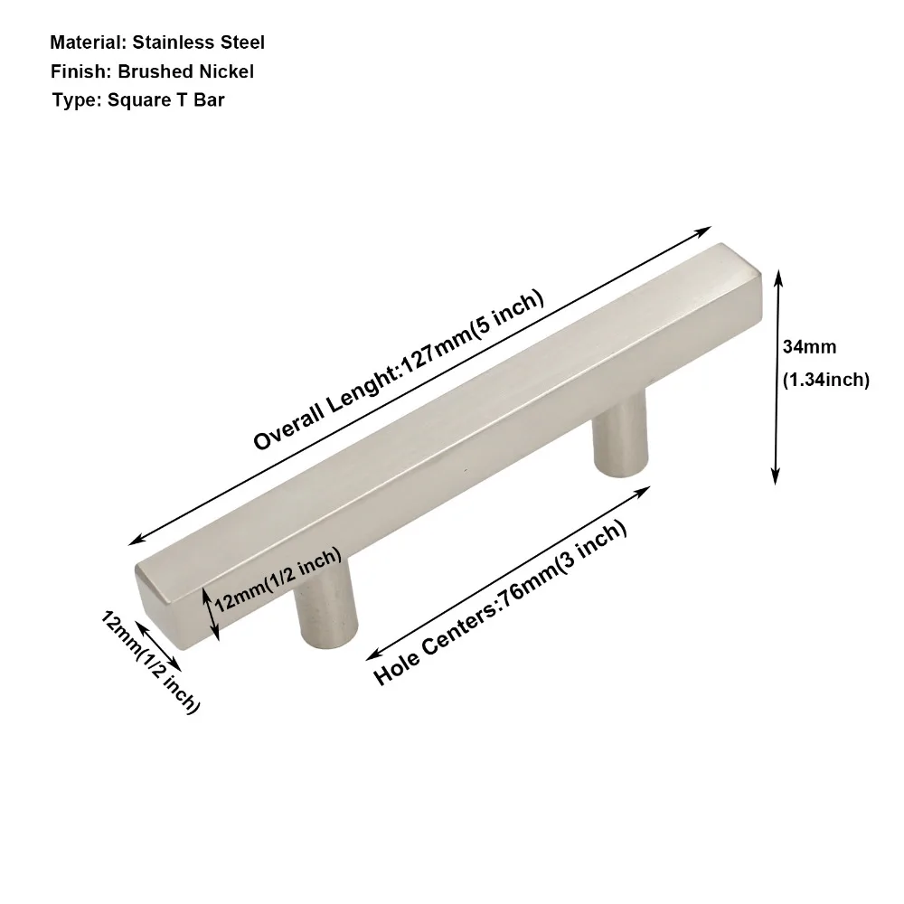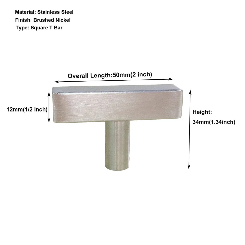 Матовый никелевый кухонный шкаф, ручки для ванной комнаты, ручки для ящиков комода из нержавеющей стали, современный квадратный Т-бар, 25 упаковок