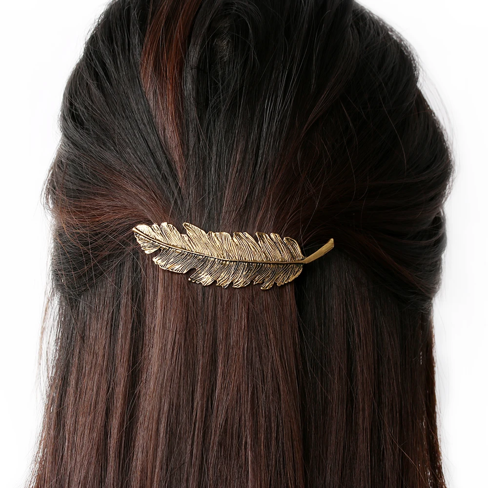 1 шт. Модные металлические заколки для волос в форме листа пера Зак...