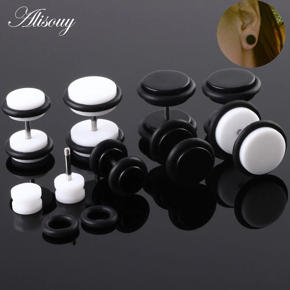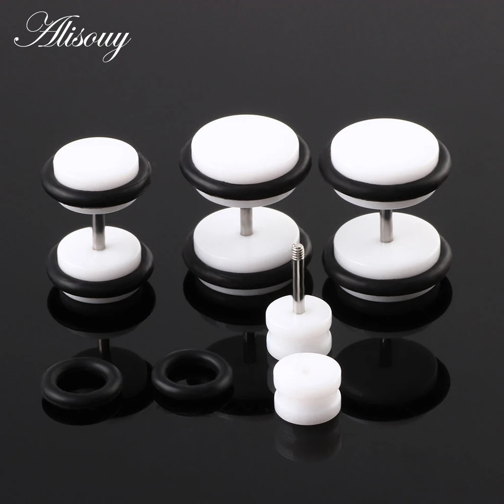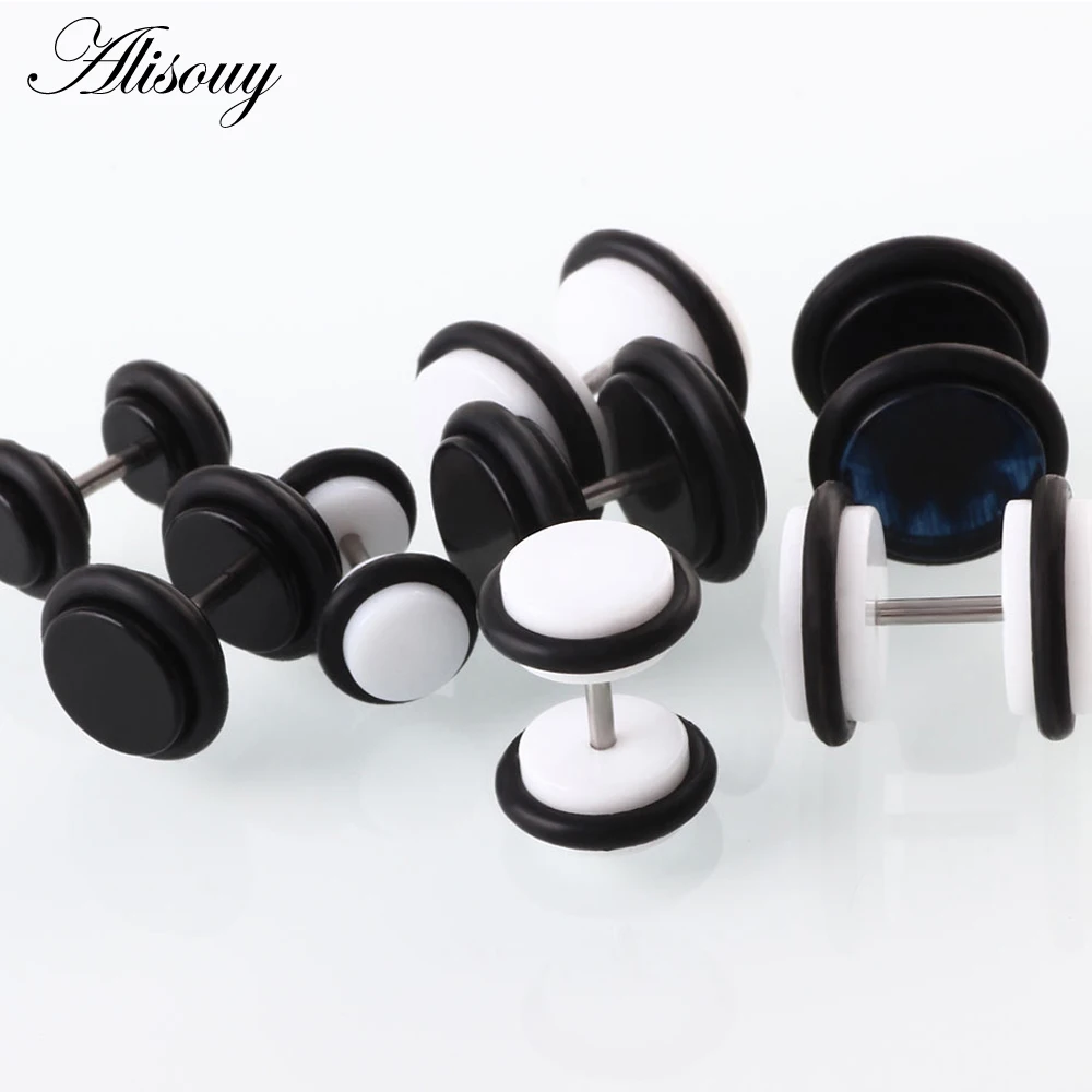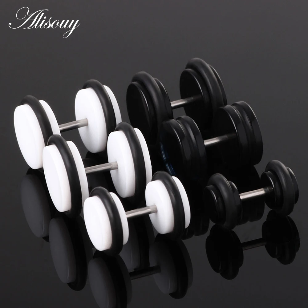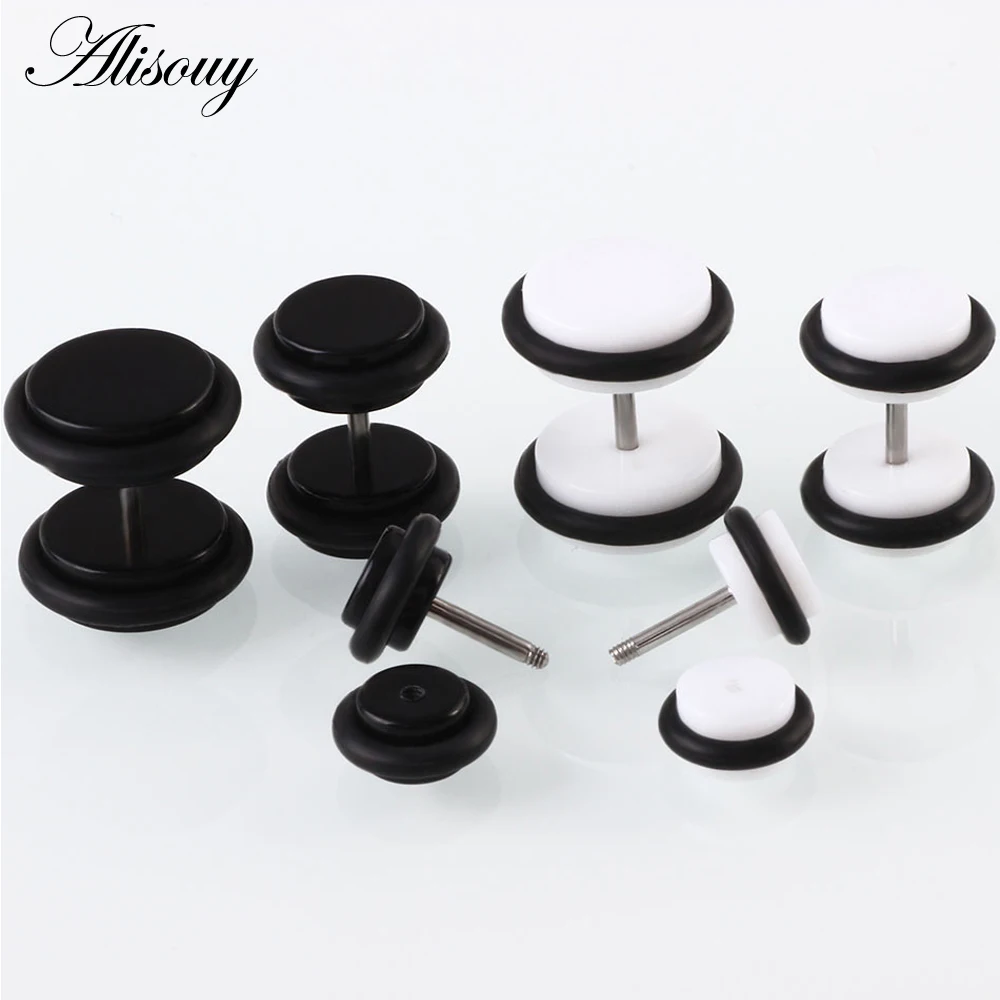Серьги Alisouy для мужчин и женщин, гвоздики из акрила, Модные Ювелирные Украшения для тела белого и черного цвета, 6 мм, 8 мм, 10 мм, 2 шт.