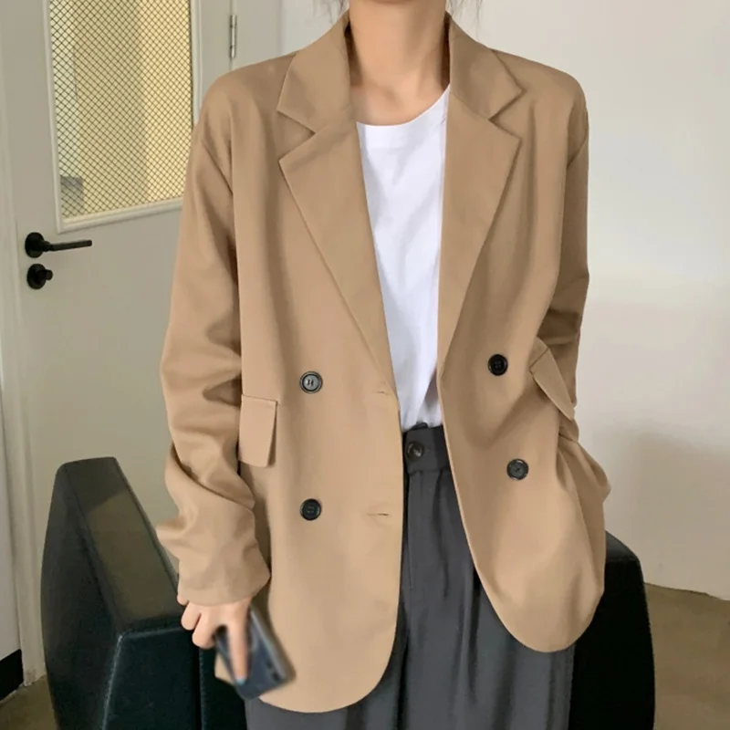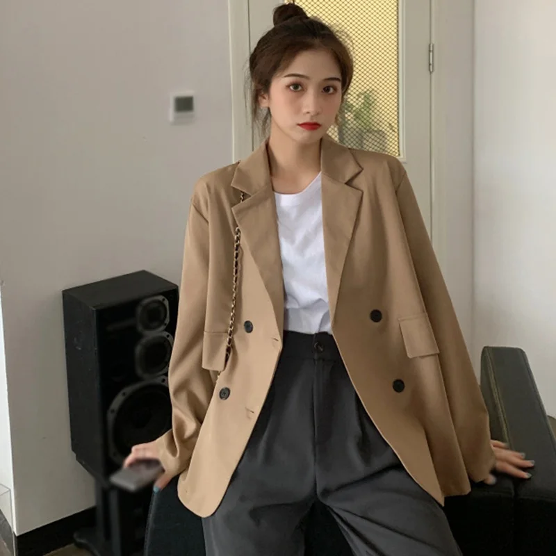 Весенне-летнее тонкое пальто для костюма, Женская драпированная Повседневная куртка средней длины цвета хаки, популярная куртка с длинными рукавами