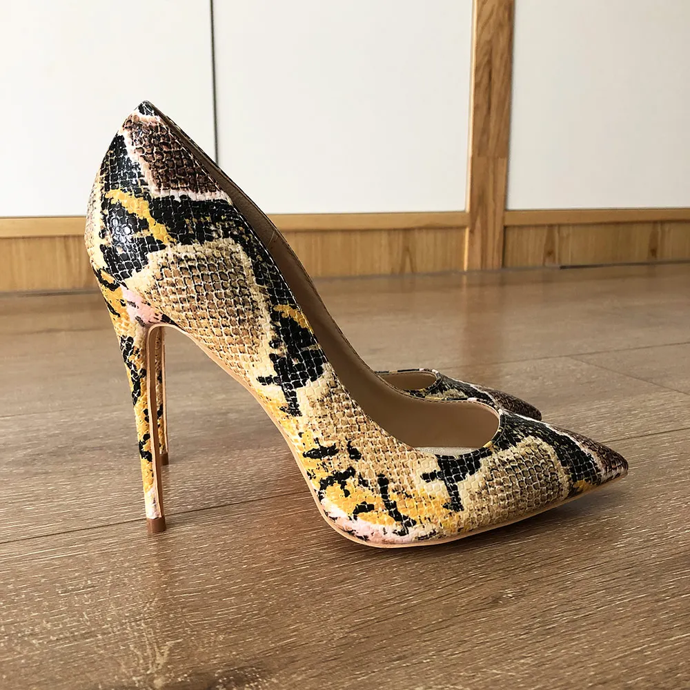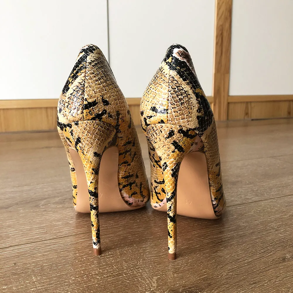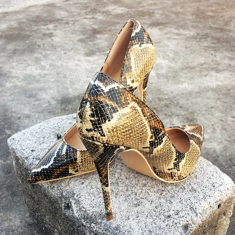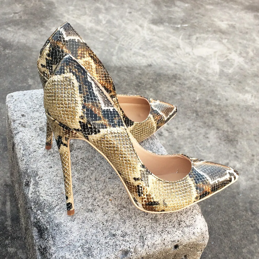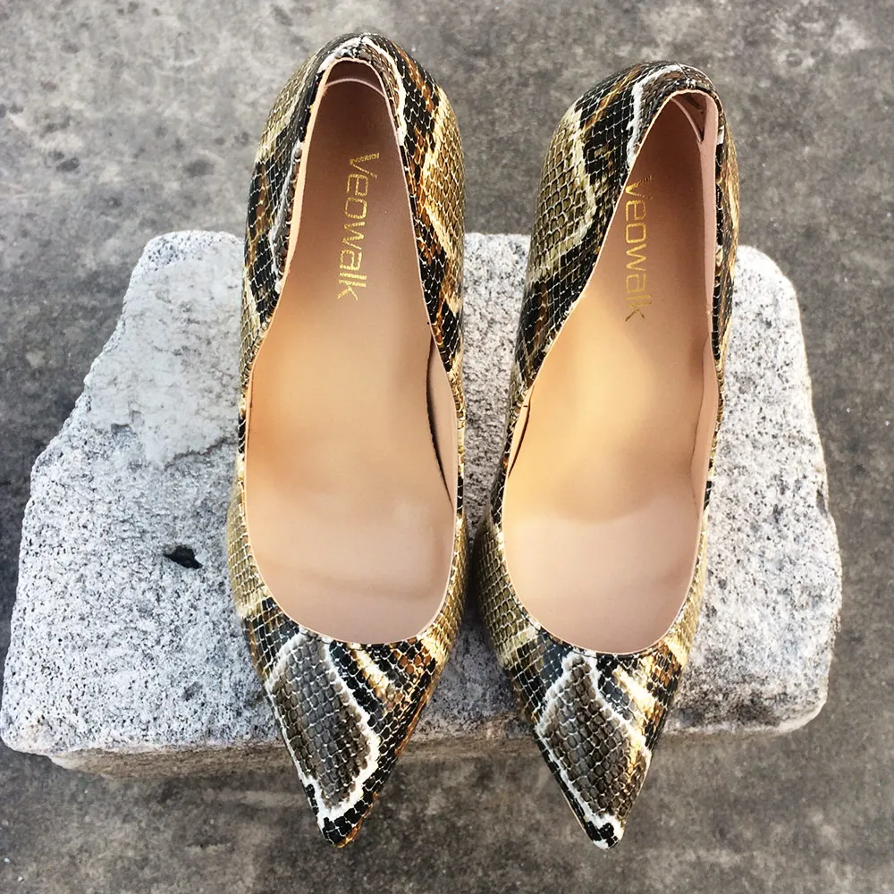 Женские туфли-лодочки Veowalk, туфли-лодочки на шпильке 8 см10 см12 см с принтом питона и заостренным носком, свадебные туфли большого размера