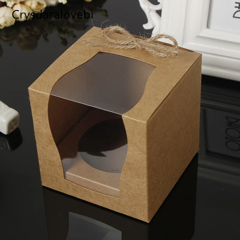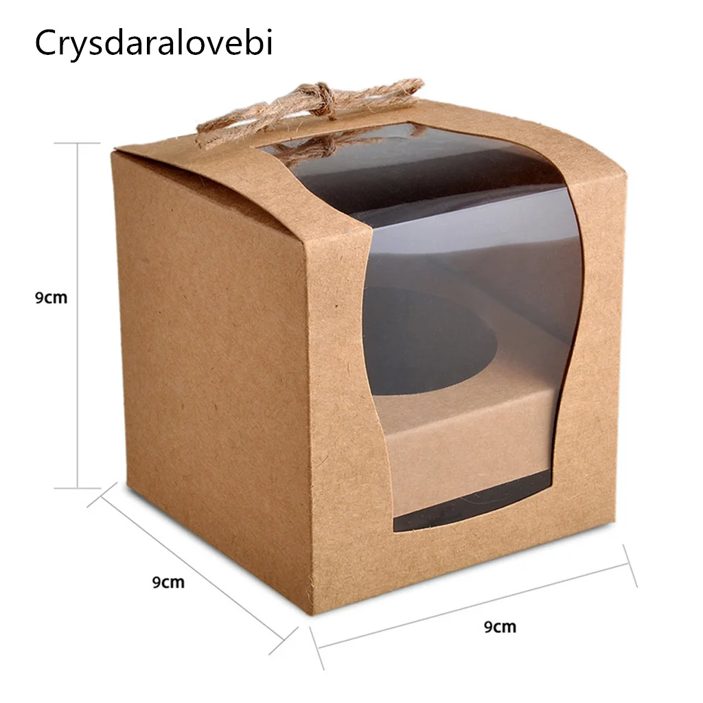 1224 шт., коричневая Крафтовая бумага, коробка для кексов, коробка для тортов с окошком, коробка для свадебной вечеринки, упаковка для торта
