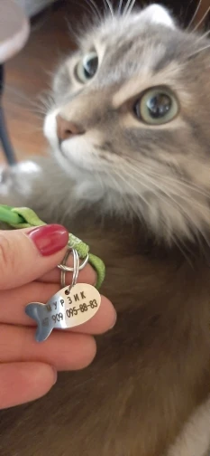 Шлейка очень классная, очень хорошего качества, продавец перед отправкой спрашивает имя котика и ваш номер телефона, чтобы выплавить на брелочке и в случае потери животного с вами могли связаться