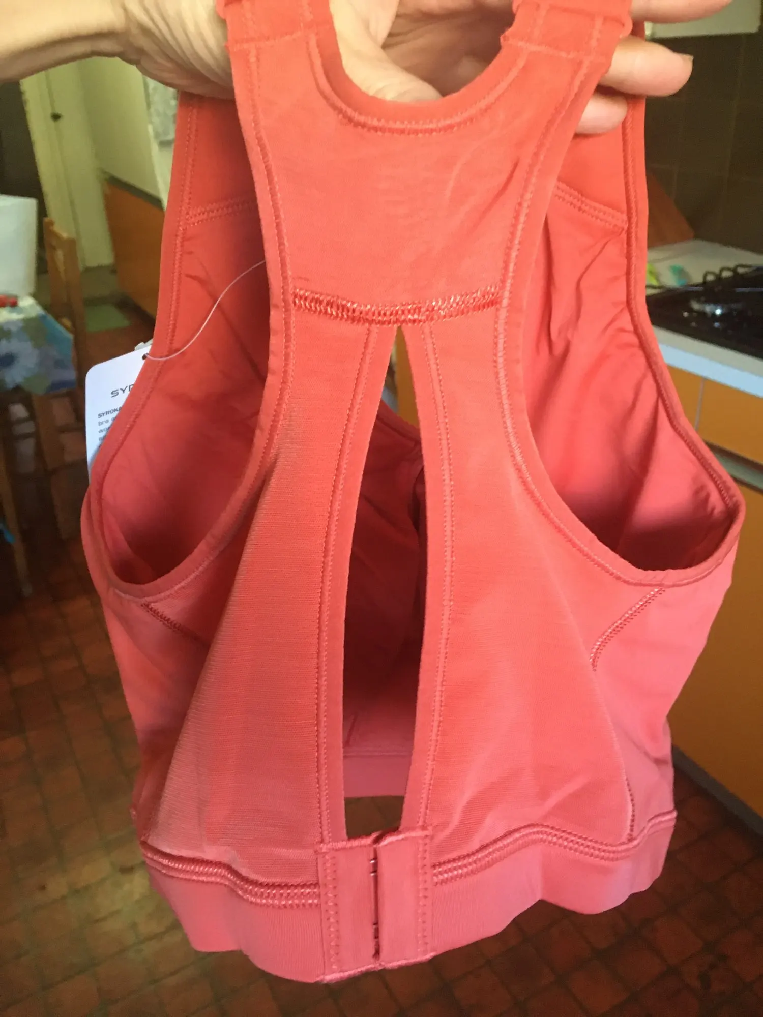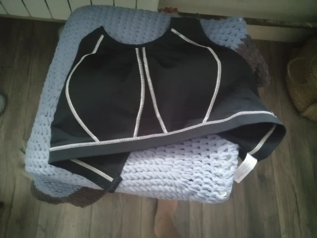 Спортивный Топ хорошего качества. Плотно прилегает, хорошо держит грудь. Я могу даже прыгать и бегать, и ничего не трясется. Я получил обхват груди 112 и обхват под грудью 90 см. Это не первый раз, когда я покупаю в этом магазине, и я обязательно закажу больше, чем один раз. Продавец супер!