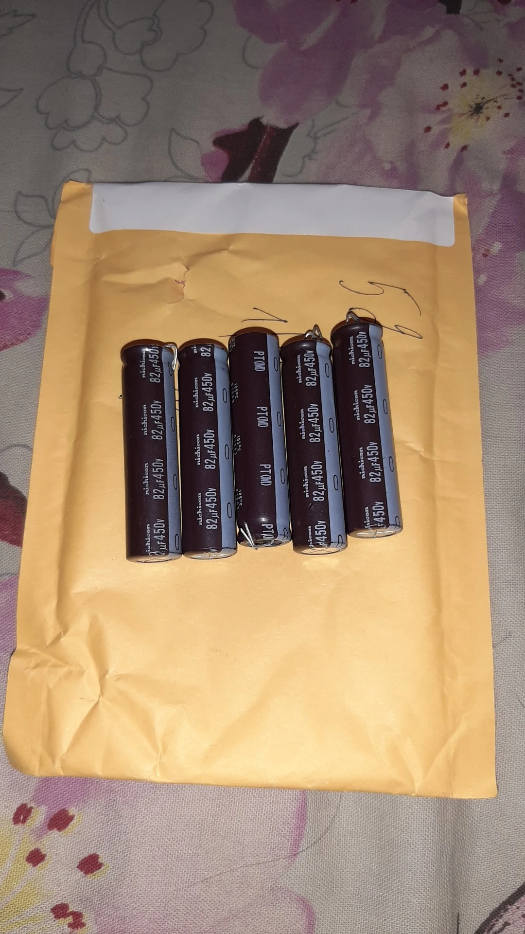 Кондеры пришли достаточно быстро, замеры показал емкость всех пяти штук 71-74мкф, esr 0,17-0,27 Ома. У одного слегка помят корпус.