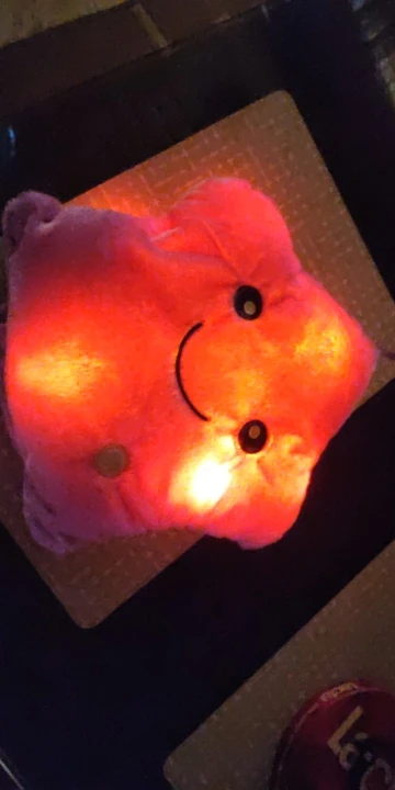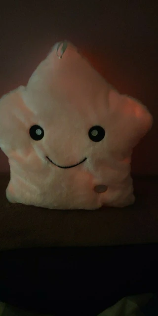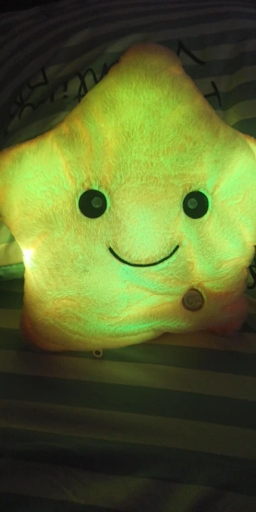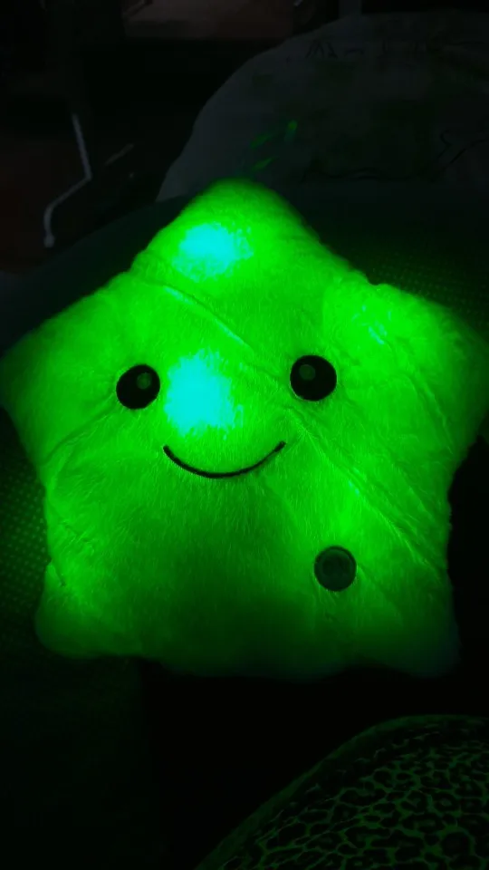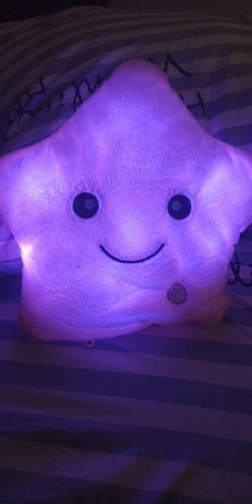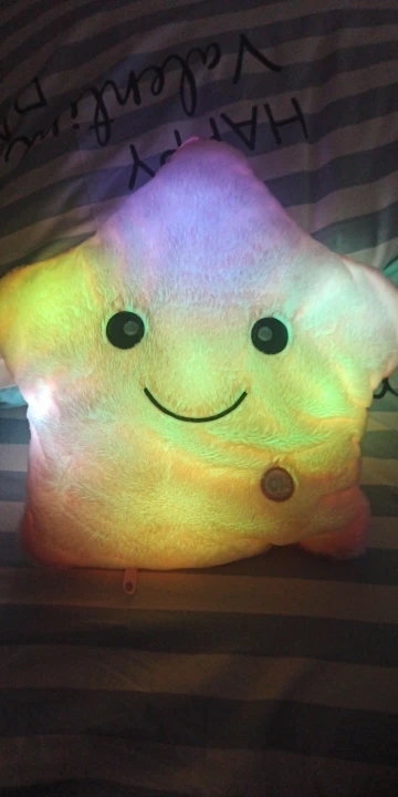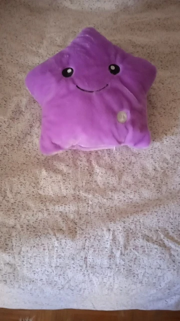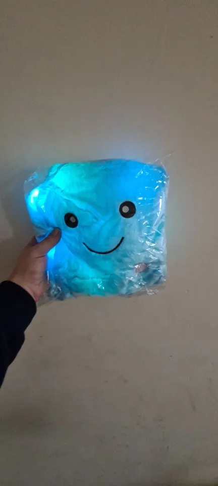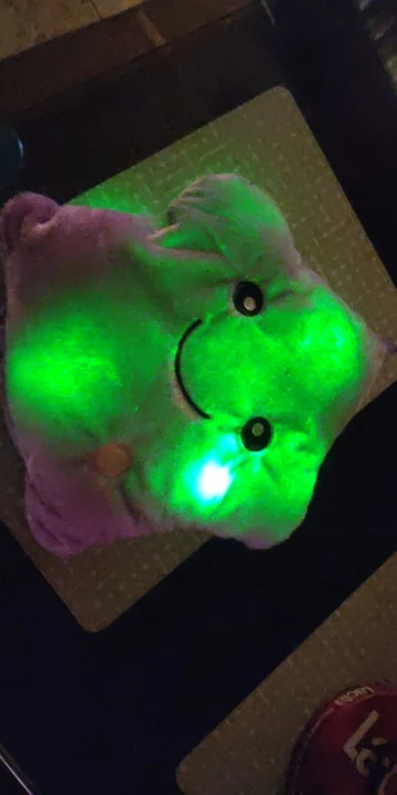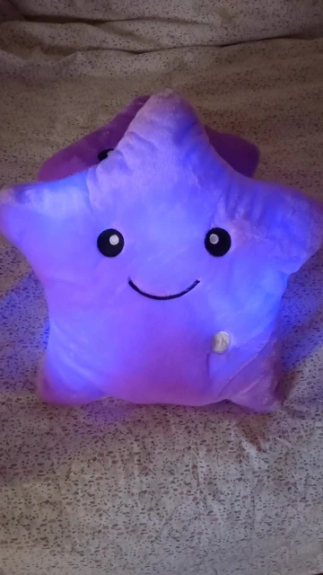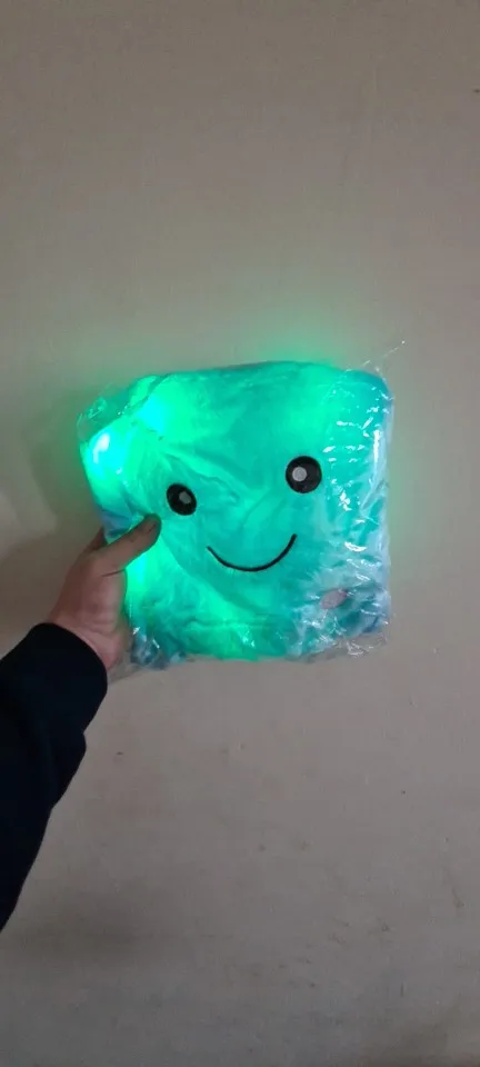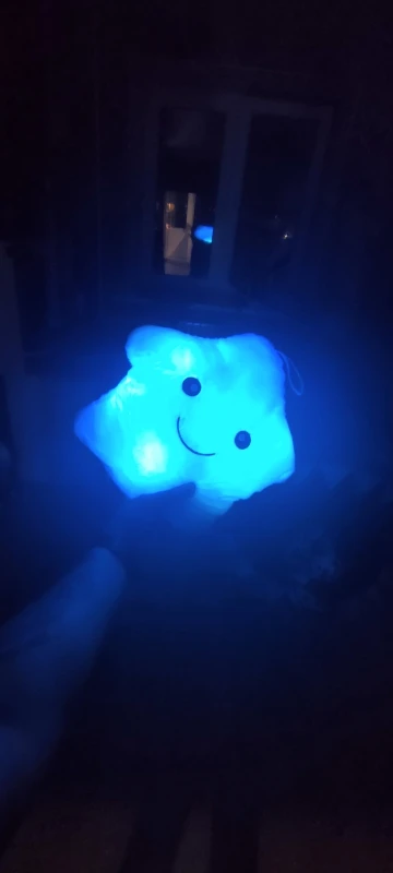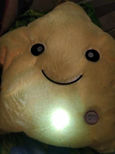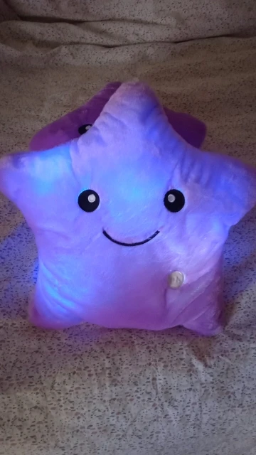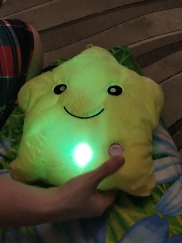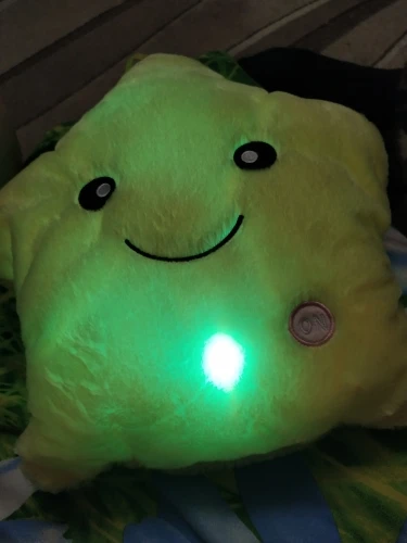 Дуже приємна на дотик подушка, світиться (потрібно 3 батарейки), рекомендую