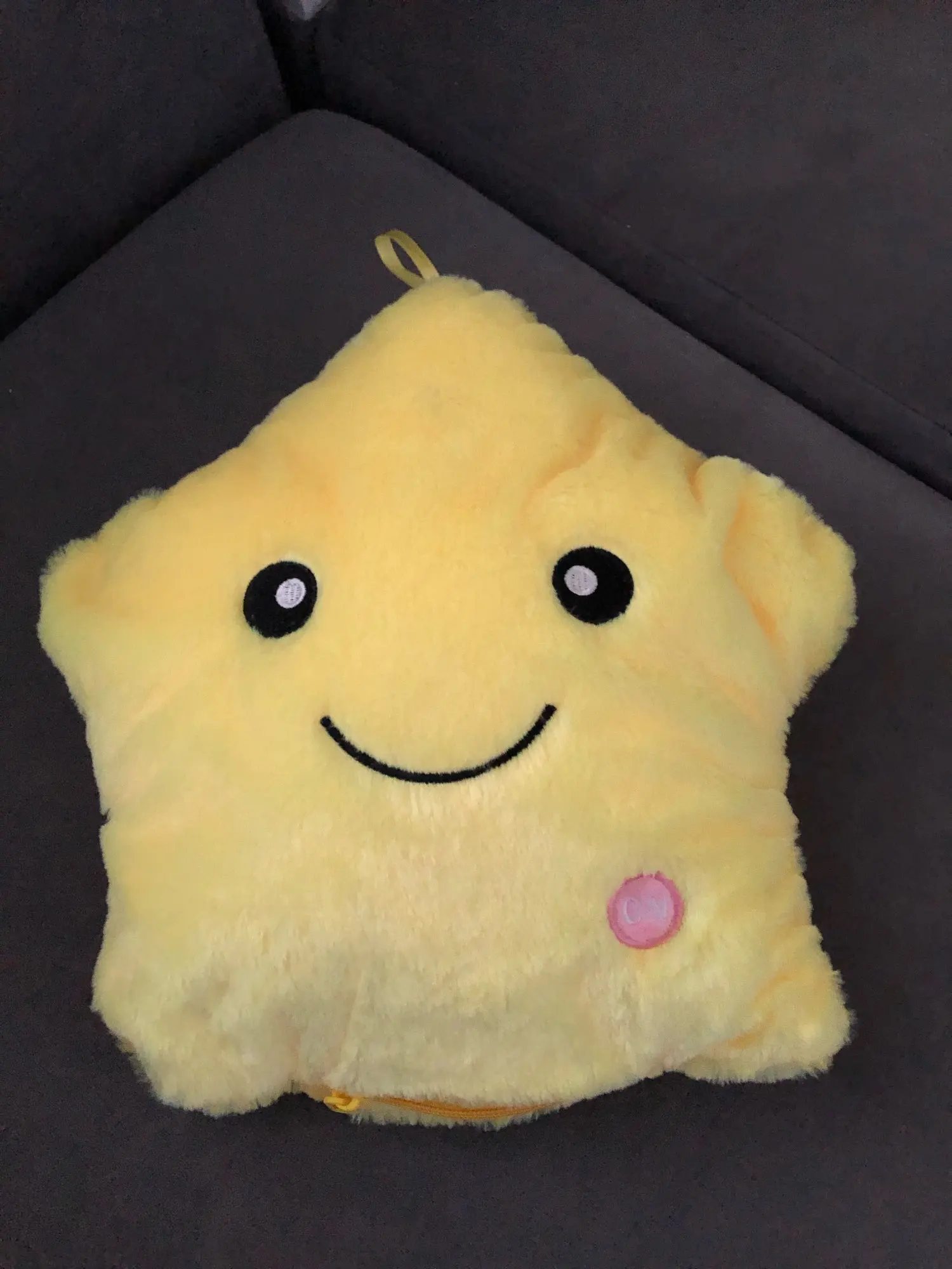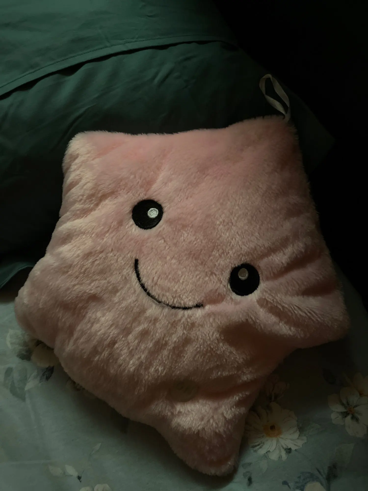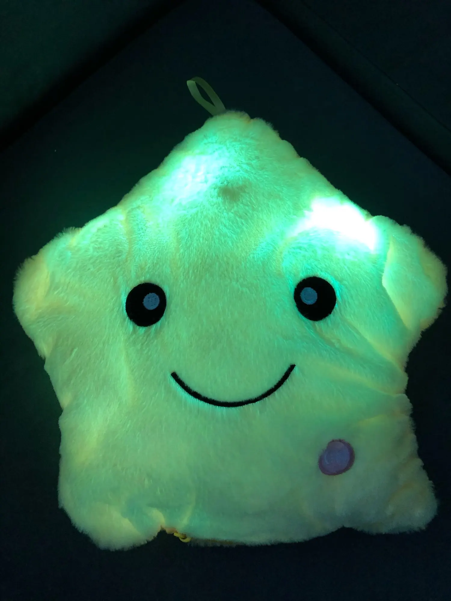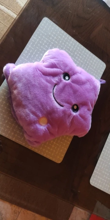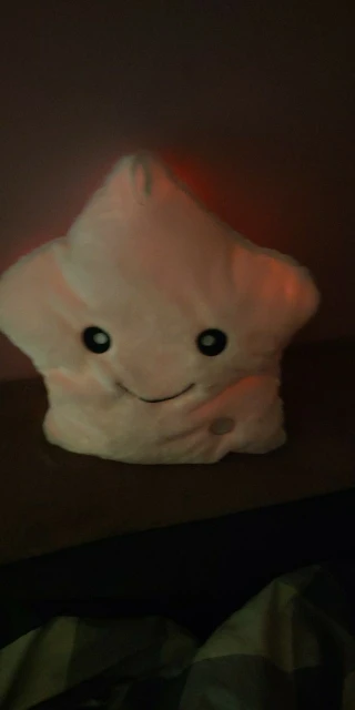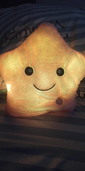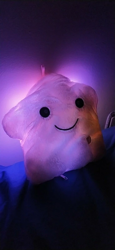 Дуже приємна на дотик подушка, світиться (потрібно 3 батарейки), рекомендую