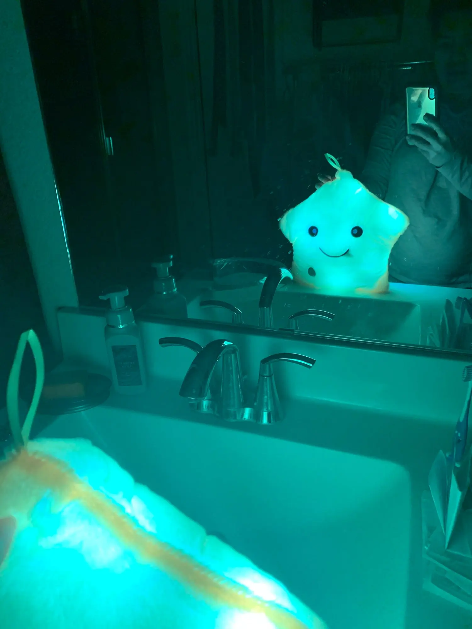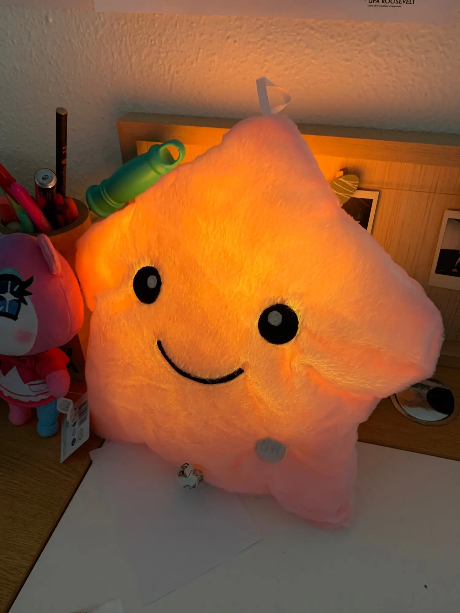 Отличная подушка-игрушка, светит достаточно ярко, сын доволен)