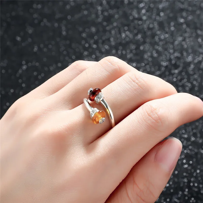Женское Открытое кольцо V.YA, Открытое кольцо из стерлингового серебра 925 пробы с желтым камнем в натуральном стиле, женское, Стерлинговое серебро ювелирные изделия